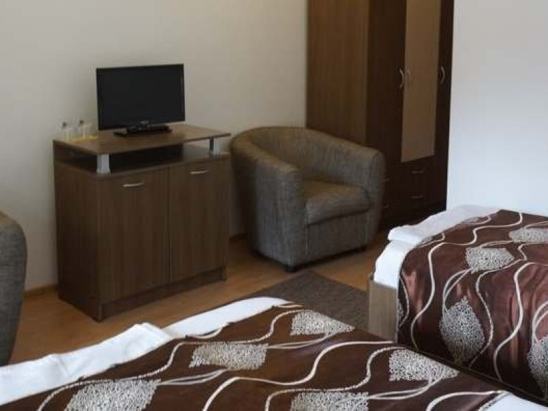 Tratament - Pensiune completa Include mic dejun (20 Lei), pranz (50 Lei) si cina (50 Lei) fisa cont in valoare totala de 120 Lei/zi/persoana (adult sau copil), o consultatie medicala/adult, tratament balnear 4 proceduri/zi/adult de luni pana sambata inclusiv, acces facilitati hotel. Sezlongurile se inchiriaza.
