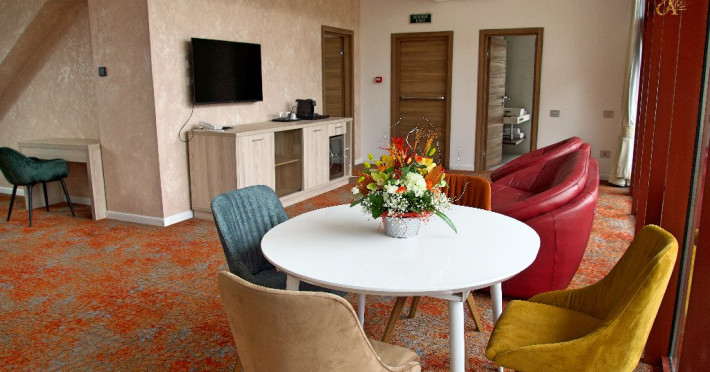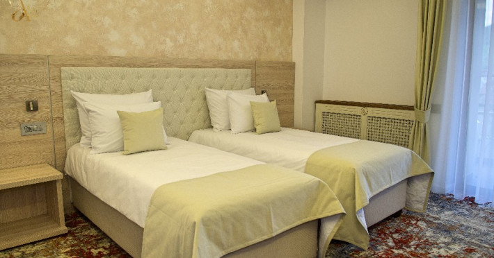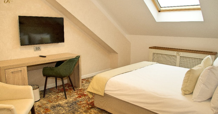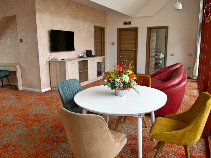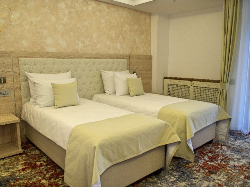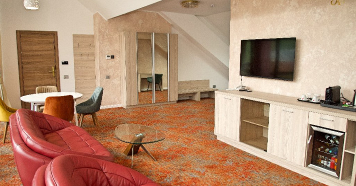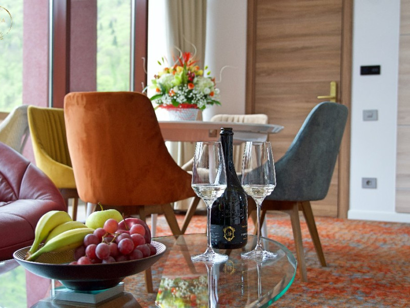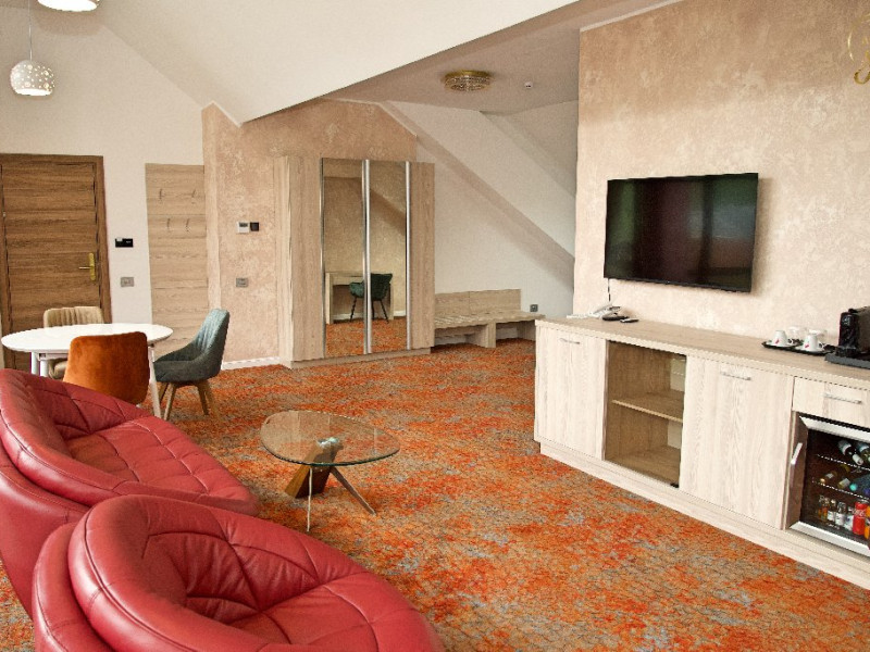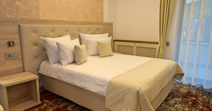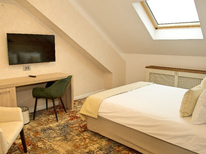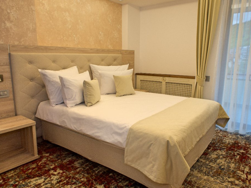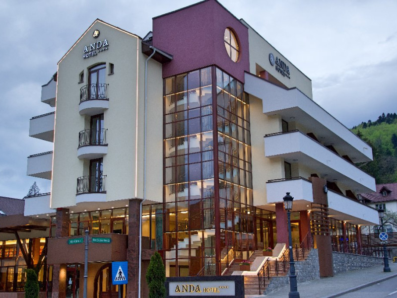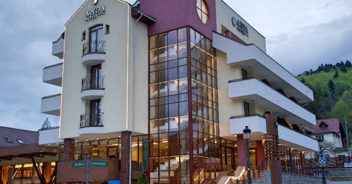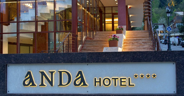 INFORMATII GENERALE Hotel Anda este situat in centrul orasului Sinaia foarte aproape de cele mai importante atractii ale statiunii, fiind alegerea perfecta atat pentru cei care doresc o escapada romantica, pentru familiile cu copii sau pentru oamenii de afaceri. DESCRIERE UNITATE DE CAZARE Hotelul dispune de parcare, terasa, restaurant, sala de conferinte, business corner, Wi-Fi, centru SPA. FACILITATI UNITATE Centrul SPA al hotelului include jacuzzi, masaj si sauna. DESCRIERE CAMERE Camerele duble cu balcon dispun de pat matrimonial sau doua paturi twin si nu au aer conditionat. Camerele duble mansardate se afla la etajul 4 al hotelului, sunt mai mici in dimensiuni, nu au balcon dar sunt dotate cu aer conditionat. Junior Suite are o singura incapere formata dintr-un pat matrimonial si o canapea extensibila. Apartamentul are doua incaperi cu usa despartitoare, un dormitor cu pat matrimonial si un living cu canapea extensibila. Camerele ofera facilitati moderne cum ar fi: sisteme de control acces in camere actionate cu cartele magnetice, LCD full HD, linie telefonica internationala, oglinda pentru machiaj, detectoare de fum si sisteme de prevenire a incendiilor, Wi-Fi gratuit, seif, halate si papuci (pentru adulti), facilitati pentru prepararea ceaiului si a cafelei, minibar, uscator de par, cosmetice ecologice. LOCALIZARE Hotel Anda se afla in centrul statiunii, la aproximativ 200 m de Castelul Stirbey, accesul fiind foarte facil din DN 1. ATRACTII TURISTICE Castelul Peles, Castelul Pelisor, Castelul Stirbey, Manastirea Sinaia, Cazinoul Sinaia, Casa Memoriala George Enescu. POLITICI Nu se accepta animale de companie. SERVICII DE MASA Hotelul dispune de restaurant cu o capacitate de 210 locuri (140 in salonul principal si 70 pe terasa), fiind locul potrivit atat pentru o masa obisnuita cat si pentru un eveniment de companie sau de familie. FACILITATI EVENIMENTE Sala de conferinte are o capacitate de aproximativ 40 de persoane si este dotata cu internet wireless, TV, aer conditionat.