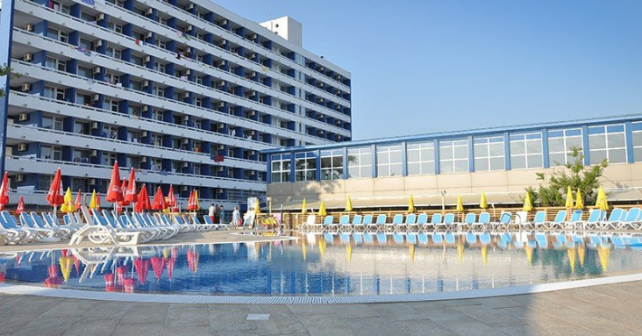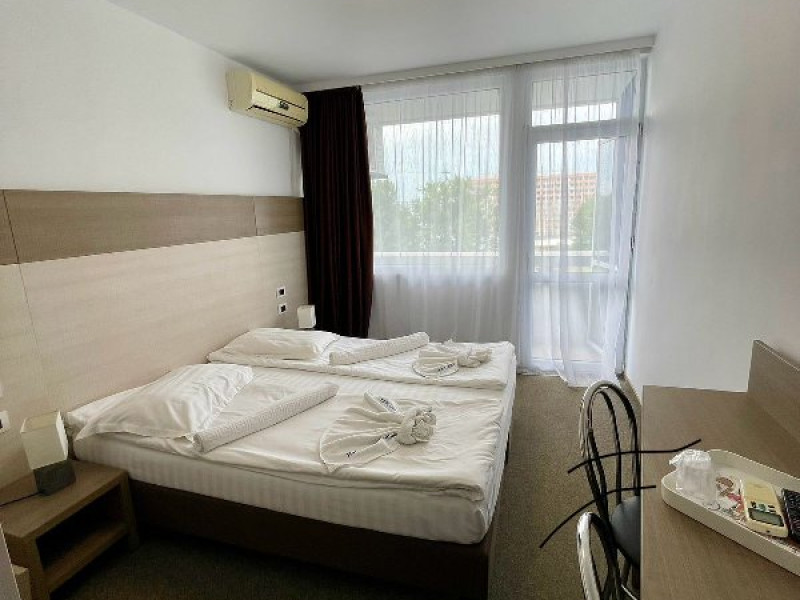 DESCRIERE CAMERE Numar total camere: 339 Duble: 339 Dotari camere: aer conditionat, TV, frigider, baie cu dus, balcon, acces pe baza de cartela magnetica, mocheta. Suprafata camerei este de cca 16mp, baia inclusa. LOCALIZARE Hotelul Aurora**+ din Mamaia este amplasat in sudul statiunii, la 25 de metri de plaja si cativa pasi de parcul Aqua Magic. Plaja: larga, nisipoasa, cu intrare lina in mare.