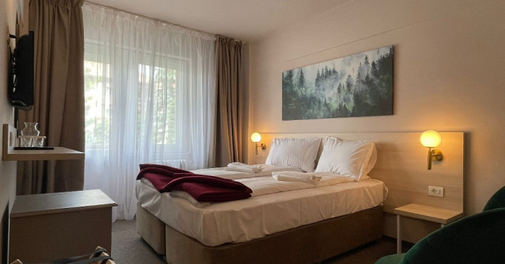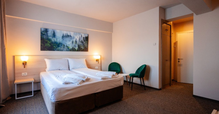 Camera family - 4 camere family pot acomoda max. 2 adulti si 2 copii pana la 14 ani. Camera Family ofera un spatiu generos, creat special pentru confortul si relaxarea intregii familii. Aceasta camera este ideala pentru doi adulti si un copil depana la 14 ani, asigurand toate facilitatile necesare pentru o sedere placuta si confortabila. Dotari camera: balcon, wi-fi, telefon, baie cu cabina de dus, papuci si halat, minifrigider, tv.