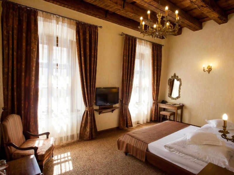 Hotel Bella Muzica este plasat chiar in Centrul Istoric al orasului Brasov, la 73 m de Piata Sfatului, fiind inconjurat de cele mai cunoscute puncte turistice si culturale. Locatia este recomandata turistilor pasionati de munte si arhitectura medievala. Biserica Neagra este la o distanta de 290 m de hotel, Turnul Negru este la 550 m, iar Turnul Alb se afla la 700 m distanta de hotel. Clasificat la categoria de 3 stele, Hotel Bella Muzica este gazduit intr-o cladire cu o arhitectura veche de 400 de ani, si ofera cazare in 34 de camere moderne, ce au pastrat eleganta secolului trecut. Camerele sunt dotate cu baie proprie cu dus, articole de toaleta gratuite, aer conditionat, incalzire centrala, TV, mini-bar, frigider, jacuzzi, telefon, seif si uscator de par. Accesul la Wi-Fi este disponibil gratuit in toata locatia. Restaurantul hotelului, situat intr-o cladire declarata monument istoric, serveste un meniu a la carte cu preparate mexicane, romanesti si maghiare. Suplimentar, hotelul ofera si terasa, gradina, bar, camera de bagaje, fax, copiator, calcatorie, spalatorie, receptie non-stop, seif la receptie si camere de familie.