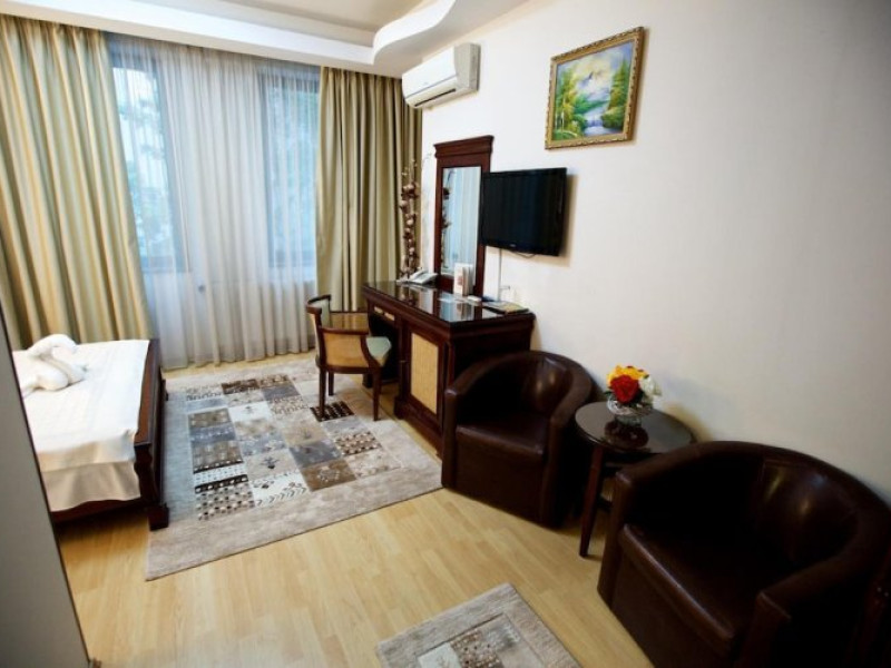 Hotel Bliss este un hotel modern de 3 stele, cu restaurant. Acesta are un stil unic Åi oferÄ servicii deosebite Åi este situat în BucureÅti, la 20 de minute de centrul oraÅului. OaspeÅ£ii vor putea ajunge uÅor la atracÅ£iile culturale Åi comerciale principale. Proprietatea se aflÄ aproape de centru Èi oferÄ o gamÄ impresionantÄ de unitÄÅ£i de cazare luminoase Èi elegante. Aceasta este idealÄ pentru relaxare sau pentru o vacanÅ£Ä activÄ. Hotel Bliss are camere spaÈioase , care se disting printr-un design interior deosebit Èi facilitÄÈi excelente cum ar fi aer condiÈionat, televiziune prin cablu, telefon direct, acces la internet, minibar, uscÄtor de pÄr, oglindÄ cosmeticÄ, seif AtracÈiile culturale Èi istorice numeroase se aflÄ la micÄ distanÅ£Ä.