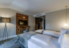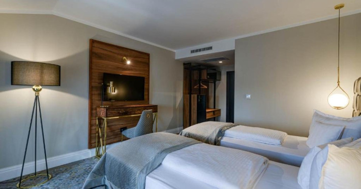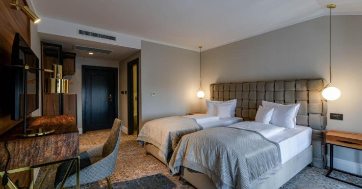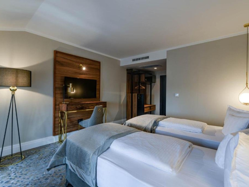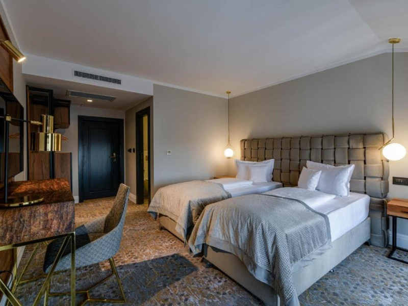 DESCRIERE CAMERE Cu o capacitate totala de 48 de locuri, hotelul dispune de 20 de camere moderne, inclusiv single, twin, matrimoniale si suite junior, concepute pentru a satisface nevoile fiecarui oaspete. Dotari camere: uscator de par si halat de baie/ papuci de casa, aer conditionat, tv cu ecran plat, minibar, seif, birou.