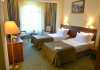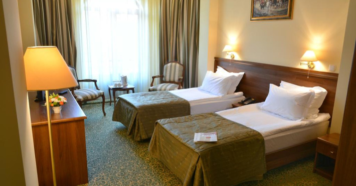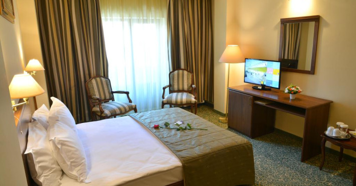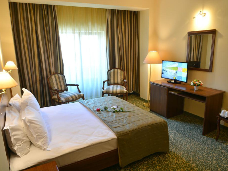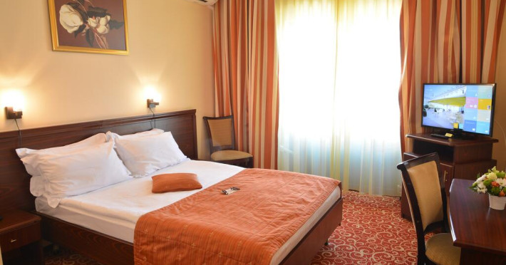 This hotel is located in a historical building in the centre of the city of Ploiesti. It is surrounded by restaurants and bars, and is just 50 m from the nearest shopping venues and 100 m from links to the public transport network. Bucharest is just an hours drive away and the establishment lies only 40 km from Henri Coanda Otopeni International Airport. This city hotel is housed in an imposing and fully restored building dating back to 1929 and comprises a total of 166 rooms. It is ideal for business travellers and holidaymakers alike and offers guests 4 restaurant lounges and a conference centre composed of 4 halls with capacity for between 20 and 200 persons. Facilities on offer to guests at this air-conditioned establishment include a lobby area with a 24-hour reception and check-out service, a hotel safe, lift access and a newspaper stand. There is a cafe, a bar and a restaurant and guests have conference facilities and WLAN Internet access at their disposal. They can also take advantage of the room and laundry services (the latter for an additional fee). Parking is available for those arriving by car. All rooms and apartments are equipped with modern amenities and most have balconies with views towards the centre of the town. All come with a private bathroom with a shower/bathtub and a hairdryer and offer a double bed. They are equipped with a direct dial telephone, satellite/cable TV, free Internet access, a safe and a minibar. Furthermore, an ironing set, air conditioning and centrally regulated heating are provided in all accommodation as standard.