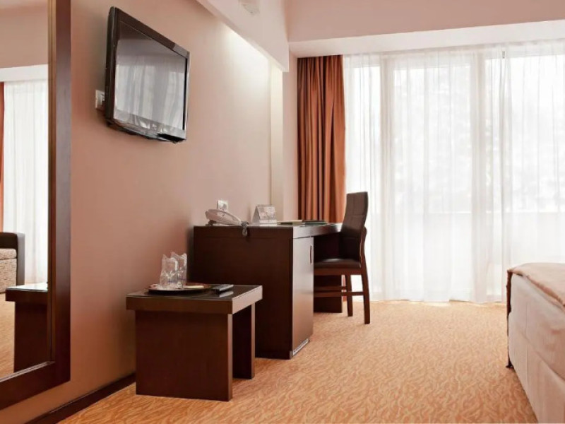 Good choice if youre looking forward to taking some rest at the hotel as much as to walking around the city. Hotel Hotel Clermont is located in Covasna. This hotel is located in 3 km from the city center.Good choice if youre looking forward to taking some rest at the hotel as much as to walking around the city. Hotel Hotel Clermont is located in Covasna. This hotel is located in 3 km from the city center.Spend an evening in a nice atmosphere of the bar. You can stop by the restaurant. Have a cup of coffee in the cafe and, who knows, maybe its going to be the best one in the city. Free Wi-Fi on the territory will help you to stay on-line.If you travel by car, you can park in a parking zone for free. If you travel by car, you can park in a parking zone. The beauty and wellness services: a massage room, a sauna, a steam bath and a spa center. Sports fans will be able to enjoy a fitness center, a gym and a table tennis area.For winter sports fans, the following services are available: a skiing area. You will find these entertainment amenities on the premises: a karaoke, a library, a bowling club, a ping-pong area and a barbeque area. Swimming fans are going to enjoy a pool and an indoor pool. For participants of business meetings, there is a conference hall.There are playrooms for children at the hotel. They will be having so much fun that you might have to spend the evening with adults. To book an excursion, consult the tour assistance desk of the hotel. For the free movement around the city, the hotel offers a transfer for you. Accessible for guests with disabilities: the elevator helps them to go to the highest floors.At the guests disposal, theres also a laundry, dry cleaning, an ATM, ironing, press, a safe-deposit box and a concierge. The staff of the hotel speaks English.Spend an evening in a nice atmosphere of the bar. You can stop by the restaurant. Have a cup of coffee in the cafe and, who knows, maybe its going to be the best one in the city. Free Wi-Fi on the territory will help you to stay on-line.If you travel by car, you can park in a parking zone for free. If you travel by car, you can park in a parking zone. The beauty and wellness services: a massage room, a sauna, a steam bath and a spa center. Sports fans will be able to enjoy a fitness center, a gym and a table tennis area.For winter sports fans, the following services are available: a skiing area. You will find these entertainment amenities on the premises: a karaoke, a library, a bowling club, a ping-pong area and a barbeque area. Swimming fans are going to enjoy a pool and an indoor pool. For participants of business meetings, there is a conference hall.There are playrooms for children at the hotel. They will be having so much fun that you might have to spend the evening with adults. To book an excursion, consult the tour assistance desk of the hotel. For the free movement around the city, the hotel offers a transfer for you. Accessible for guests with disabilities: the elevator helps them to go to the highest floors.At the guests disposal, theres also a laundry, dry cleaning, an ATM, ironing, press, a safe-deposit box and a concierge. The staff of the hotel speaks English.The room is warmly decorated and has everything you need to have a rest after a long eventful day. There is a shower, a TV, a mini-bar, a bathrobe and slippers. The room equipment depends on its category.The room is warmly decorated and has everything you need to have a rest after a long eventful day. There is a shower, a TV, a mini-bar, a bathrobe and slippers. The room equipment depends on its category..1 EUR not included 19 per guest per night.EUR airport not included 180 two ways