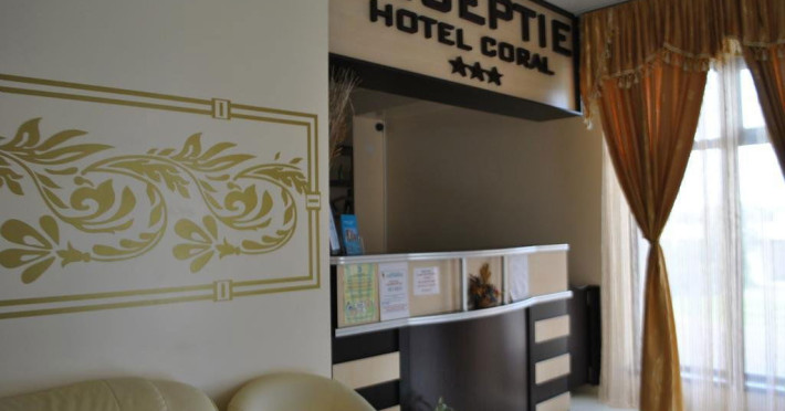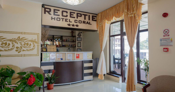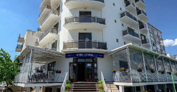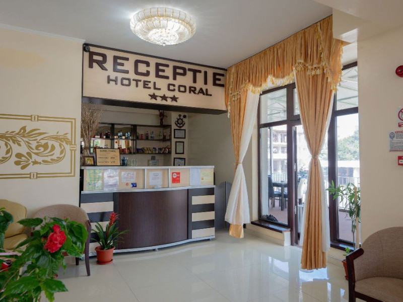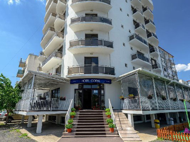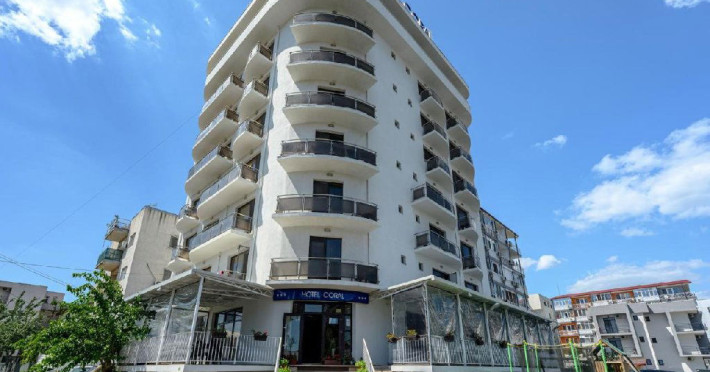 Hotel Coral din Eforie nord oferÄ servicii de calitate pentru vacante de neuitat. DotÄri generale: parcare proprie cu o capacitate de 70 locuri, loc de joaca pentru copii, terasa, demisol, parter si 7 etaje,lift. DotÄri camere: aer condiÈionat ,tv, mobilier modern, baie proprie cu cabina de dus, rÄcitoare, balcon pentru toate camerele, excepÈie cele de la parter si demisol. NumÄrul de camere :68,dintre camere 4 camere Twin, 6camere Triple, 58 camere duble.