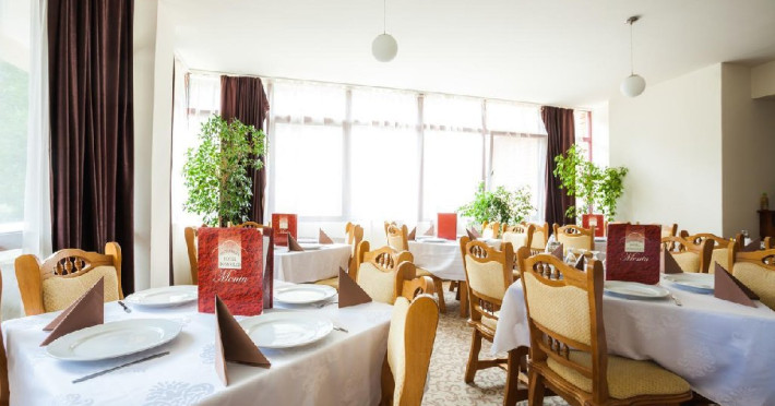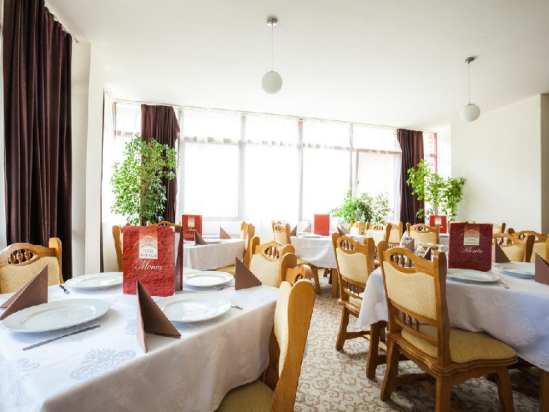 SERVICII DE MASA Restaurantul hotelului situat la etajul 1, are o capacitate de 180 locuri. Pot fi servite meniuri traditionale si internationale, in regim bufet suedez sau a la carte. Barul de zi, cu terasa, are o capacitate de 100 de locuri si este situat la parterul hotelului, in zona de lobby.