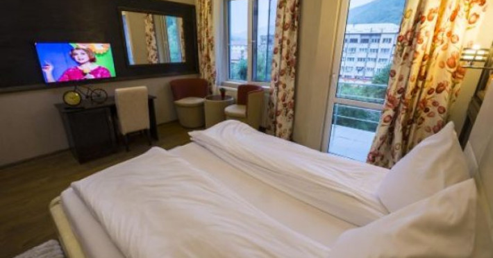 A very nice option for those who like to be on the move! Hotel Hotel Golden Spirit is located in Baile Herculane. This hotel is located in the city center. In the morning, have a cup of coffee while looking at the city from the window.A very nice option for those who like to be on the move! Hotel Hotel Golden Spirit is located in Baile Herculane. This hotel is located in the city center. In the morning, have a cup of coffee while looking at the city from the window.Spend an evening in a nice atmosphere of the bar. Wi-Fi on the territory will help you stay on-line. The following services are also available for the guests: a massage room and a sauna. You will find these entertainment amenities on the premises: a library.For business meetings, there is a conference hall. The staff of the hotel will order a transfer for you. Accessible for guests with disabilities: the elevator helps them to go to the highest floors. Additional services that the hotel offers to its guests: a safe-deposit box.Spend an evening in a nice atmosphere of the bar. Wi-Fi on the territory will help you stay on-line. The following services are also available for the guests: a massage room and a sauna. You will find these entertainment amenities on the premises: a library.For business meetings, there is a conference hall. The staff of the hotel will order a transfer for you. Accessible for guests with disabilities: the elevator helps them to go to the highest floors. Additional services that the hotel offers to its guests: a safe-deposit box.Guests will find the following in the room: an alarm clock, a TV, a bathrobe and slippers. Please note that the listed services may not be available in all the rooms.Guests will find the following in the room: an alarm clock, a TV, a bathrobe and slippers. Please note that the listed services may not be available in all the rooms.Guests are required to show a photo identification and credit card upon check-in. Please note that all Special Requests are subject to availability and additional charges may apply. Food beverage services at this property may be limited or unavailable due to Coronavirus (COVID-19). Due to Coronavirus (COVID-19), this property is taking steps to help protect the safety of guests and staff. Certain services and amenities may be reduced or unavailable as a result. Guests under the age of 18 can only check in with a parent or official guardian. Hotel Golden Spirit is located at the following location: 445235N 222447E Please note that a check-in after 16:00 is not possible.