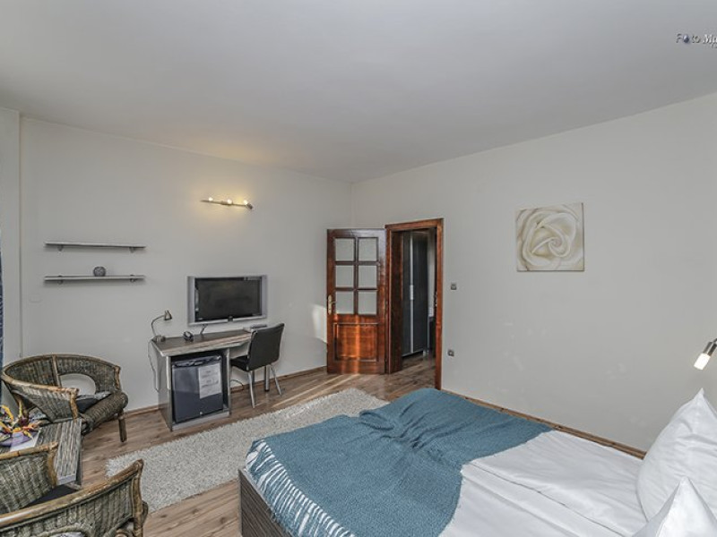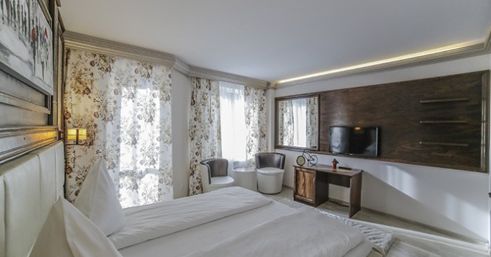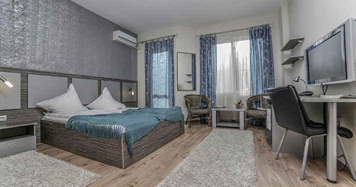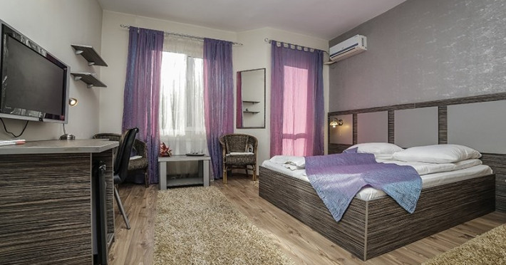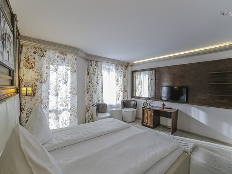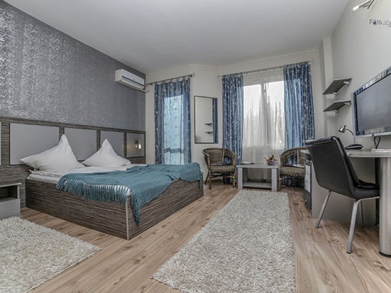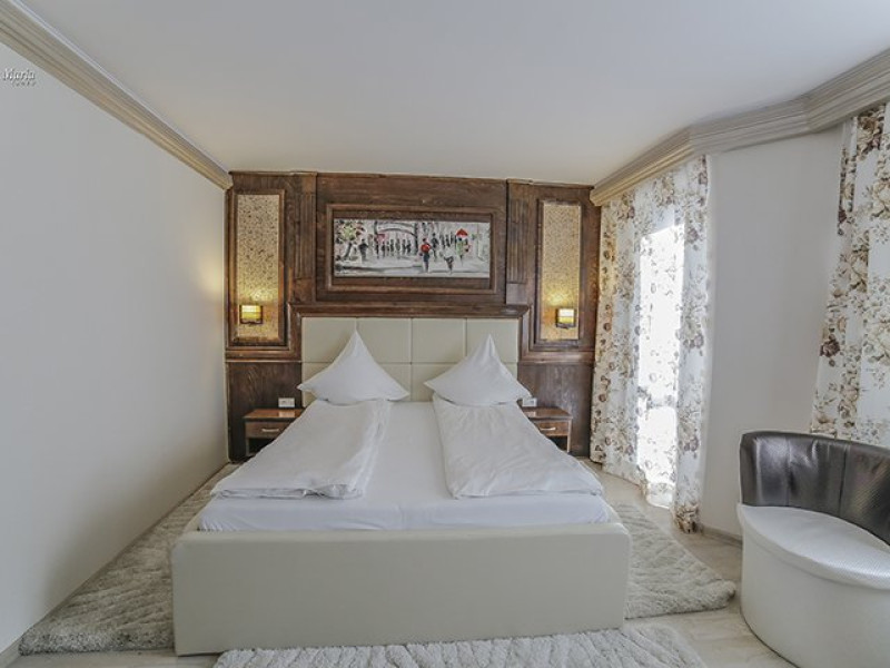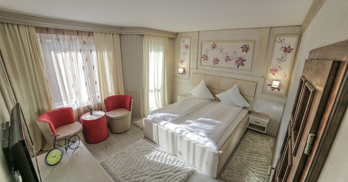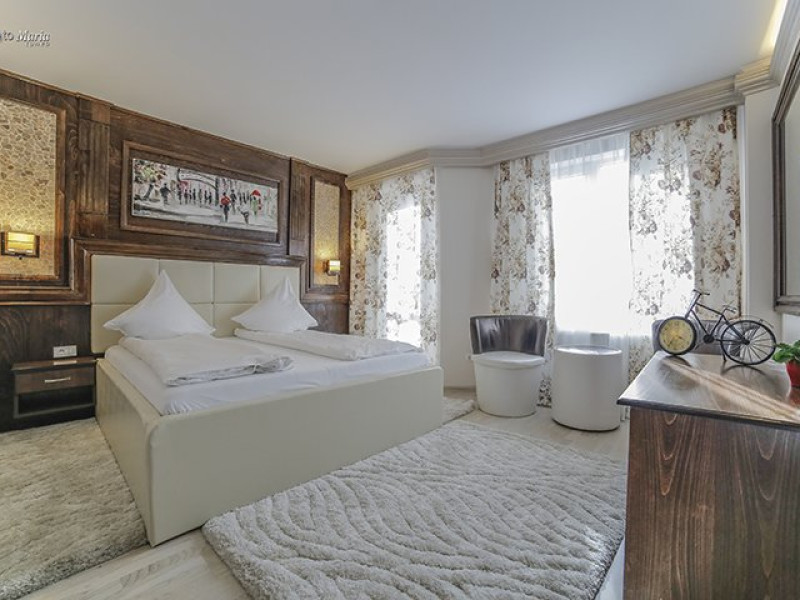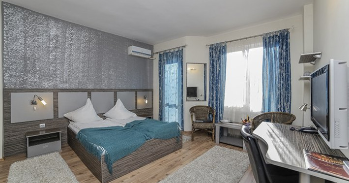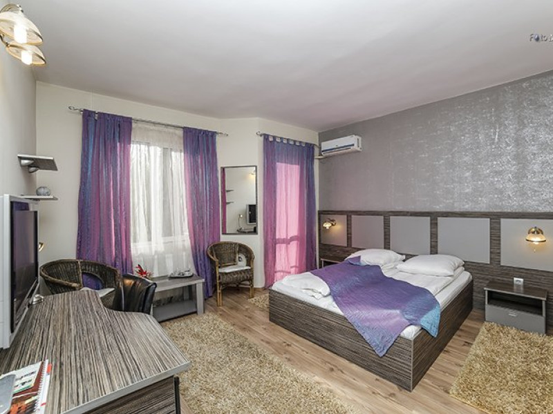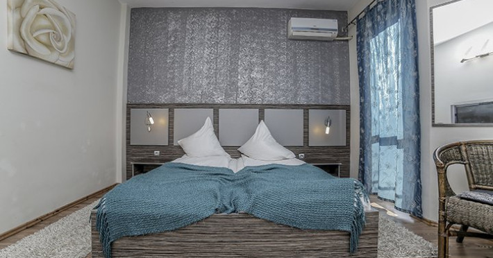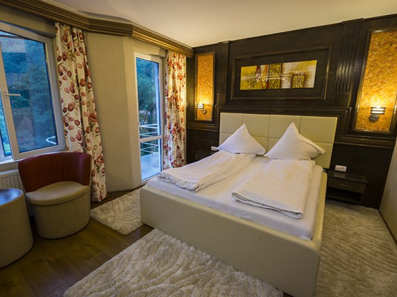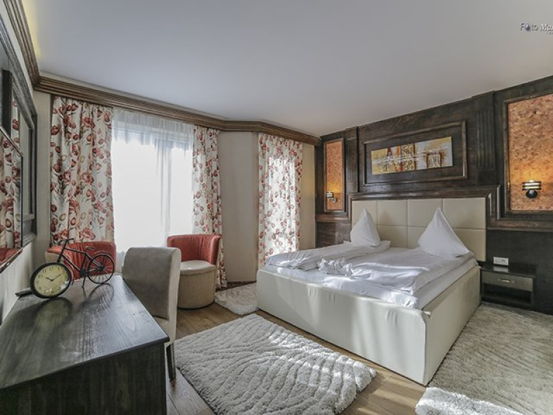 DESCRIERE CAMERE Hotelul dispune de 26 camere duble, cu diferite grade de confort: Camere premium - camere cu un confort sporit, avand in dotare balcon, aer conditionat, birou de lucru,telefon, televizor LCD,uscator par/corp, cabina dus cu hidromasaj digitala, internet wirless Camera dubla confort - camere elegante, cu mobilier din lemn masiv si un design special, dispunand de balcon, birou de lucru,televizor LCD, uscator par.nbsp; Camera dubla confort cu jacuzzi - camere elegante, cu mobilier din lemn masiv si un design special, dispunand de balcon, birou de lucru,televizor LCD, cada cu hidromasaj, uscator par.nbsp; Camera tripla confort - camere elegante, cu mobilier din lemn masiv si un design special, dispunand de balcon, birou de lucru,televizor LCD, uscator par. Este dotat cu un pat matrimonial cu o saltea tip dormeo si canapea extensibila.