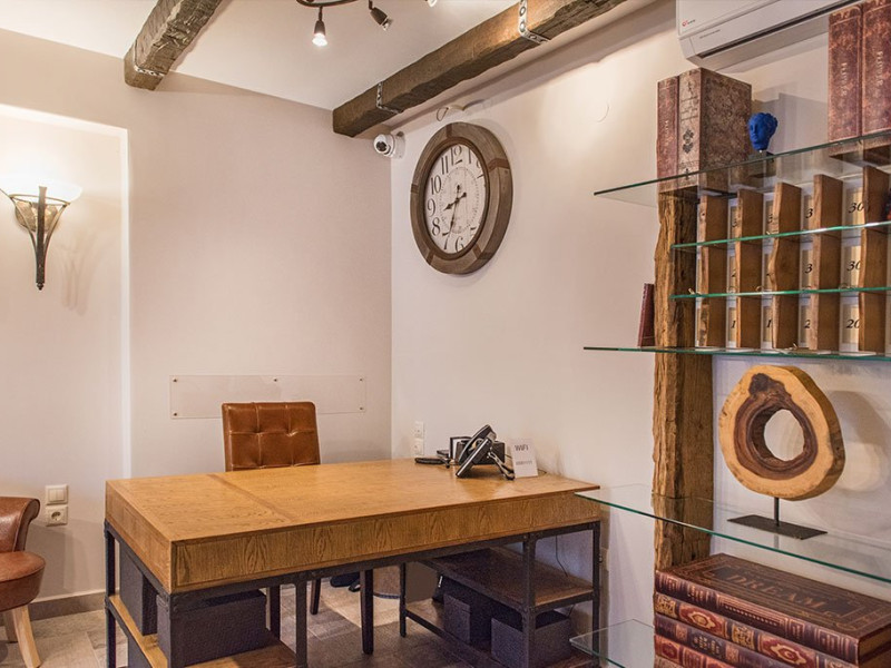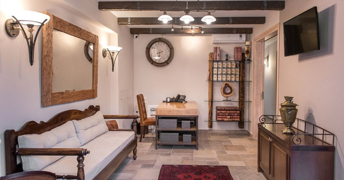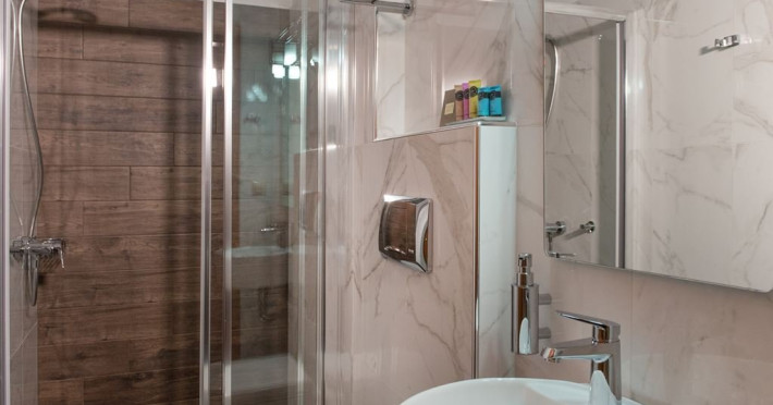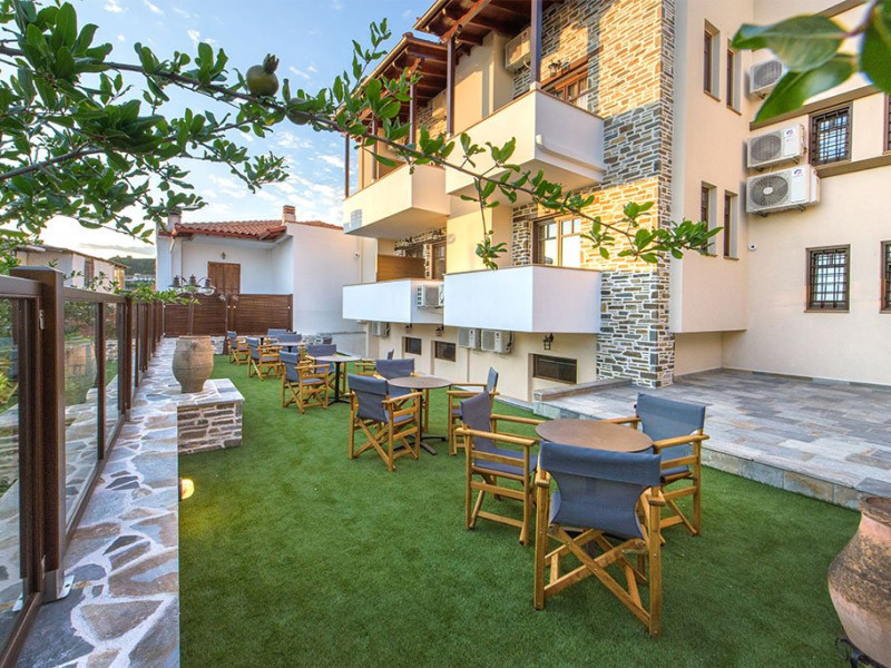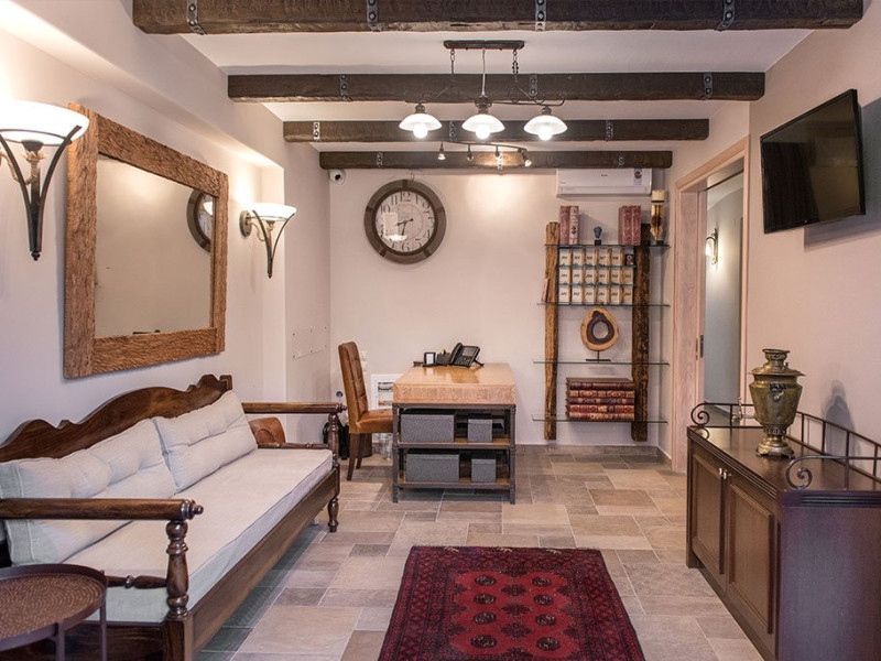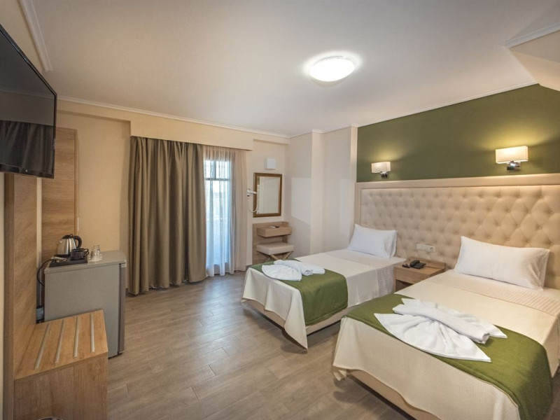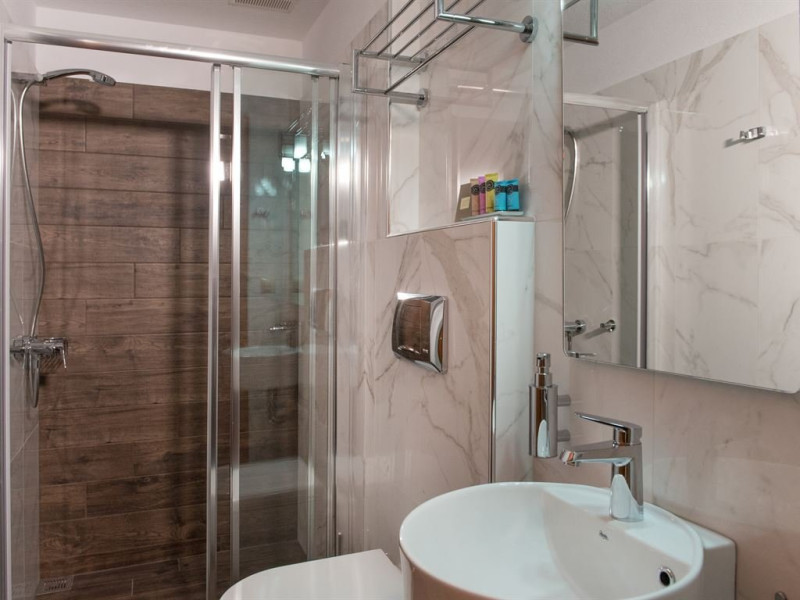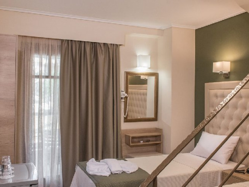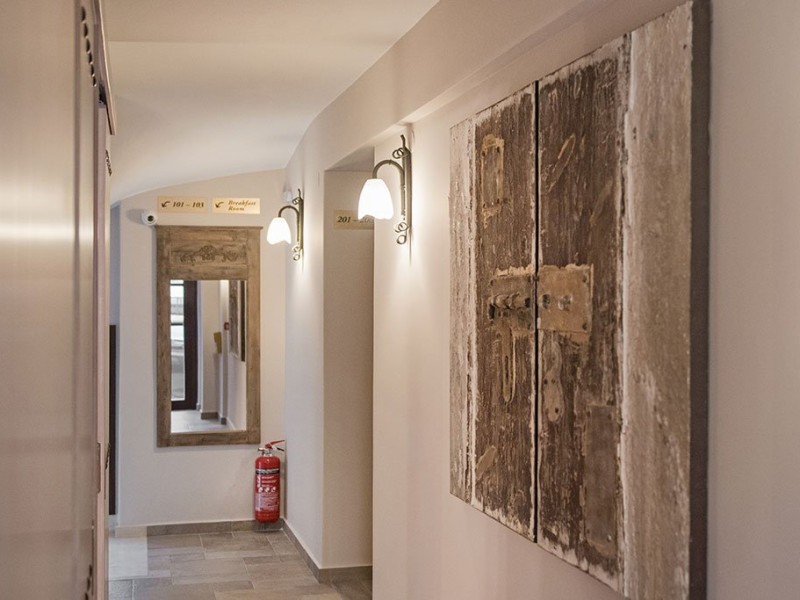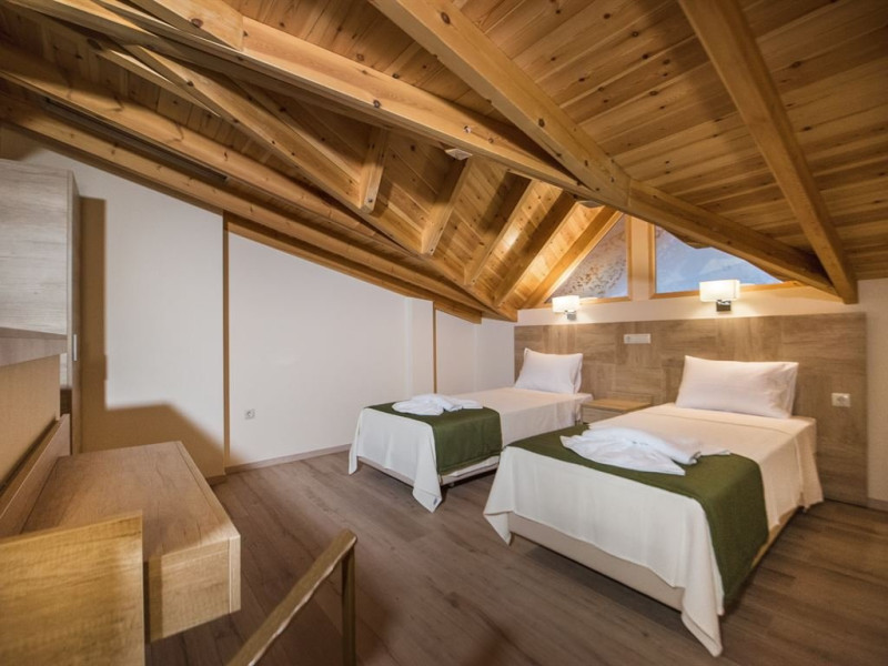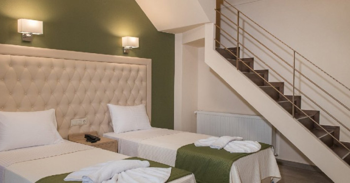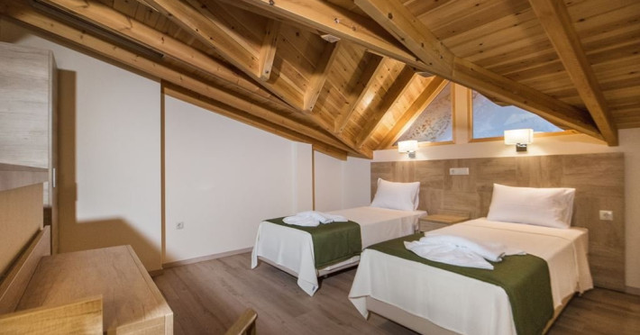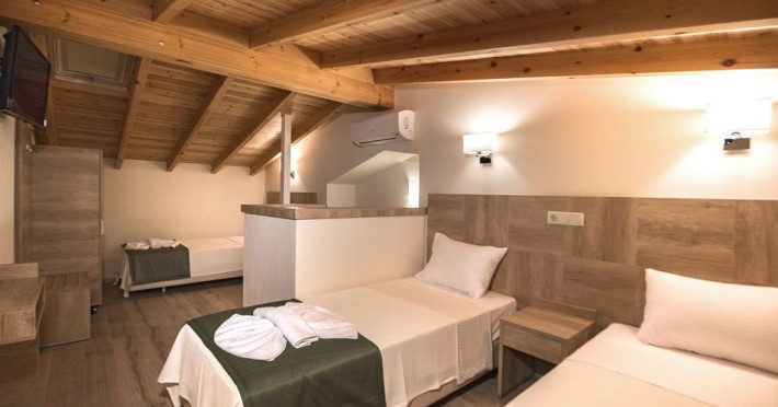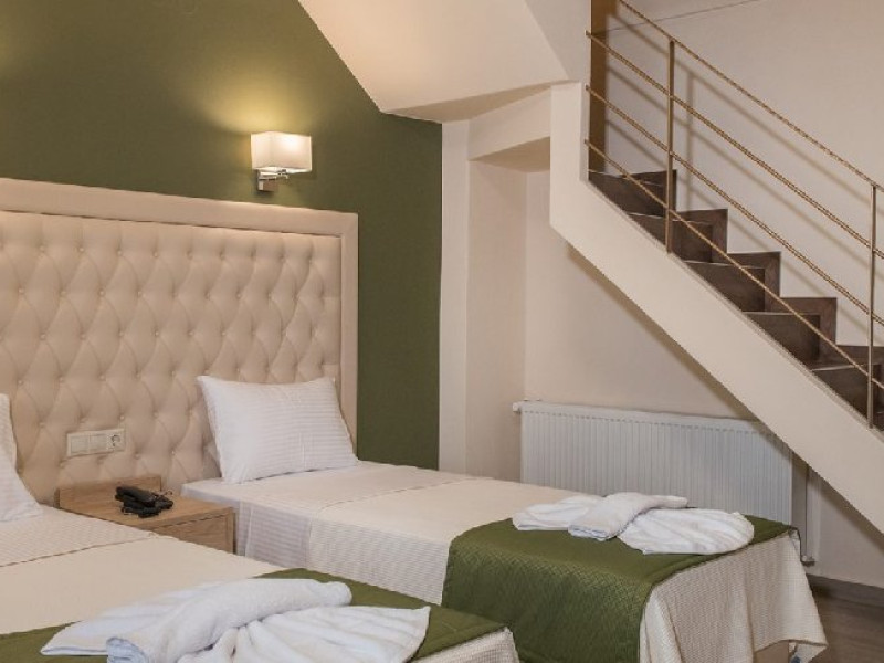 Facilitati camere: Toate cele 17 camere beneficiaza de: TV, AC, WiFi, frigider, fierbator, uscator de par, seif, telefon, baie cu dus, balcon/veranda. Camerele duble/triple: 16 m2 - paturi twin. Camerele Economy se afla la parter. Suitele: 35 m2 Maisonette in stil Suita Junior (plan deschis). La parter sunt 2 paturi de o persoana, la ultimul etaj sunt 2 paturi de o persoana. 2 televizoare, 2 aparate de aer conditionat. Suita Duplex in stil maisonette (plan deschis). La parter sunt 2 paturi de o persoana, la ultimul etaj sunt 3 paturi de o persoana. 2 televizoare, 2 aparate de aer conditionat.