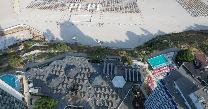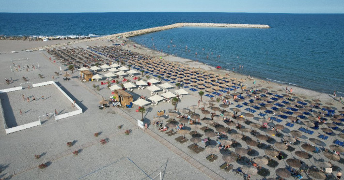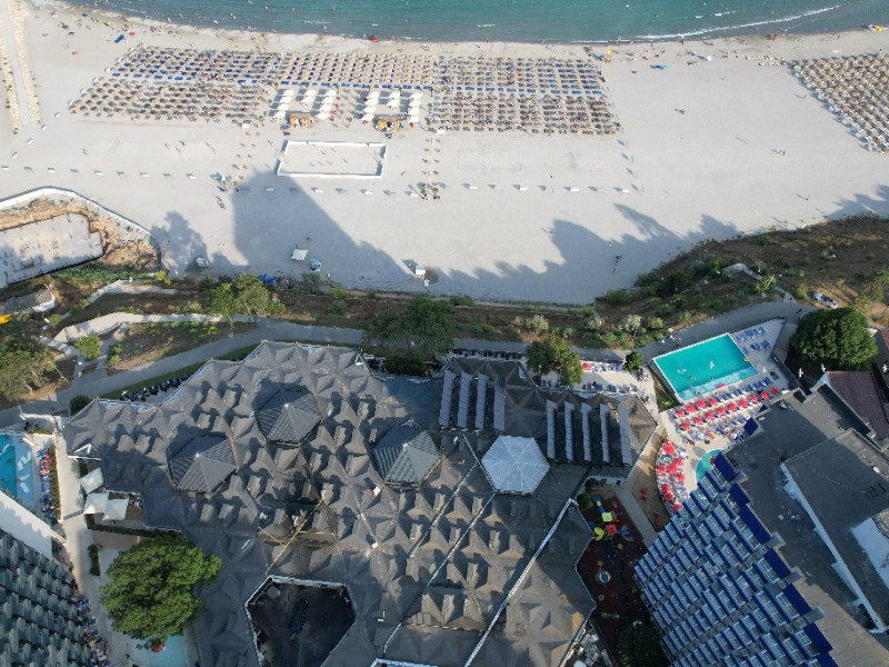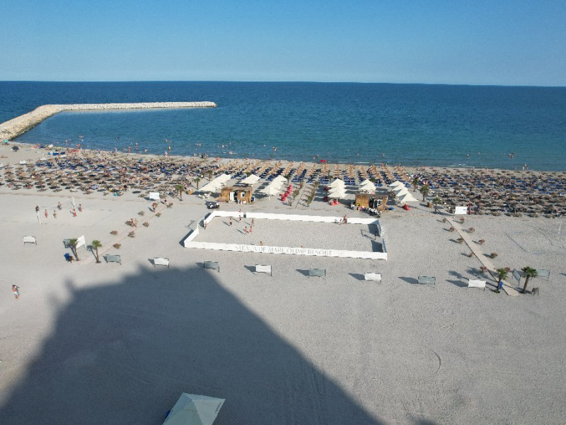 FACILITATI UNITATE Hotelul beneficiaza de plaja privata situata in fata resort-ului, locuri de joaca interioare si exterioare pentru copii, piscine pentru adulti si pentru copii, Beach Bar. Hotelul dispune de un restaurant cu terasa, Pool Bar, o sala de conferinte complet echipata, locuri de joaca interioare si exterioare, o piscina pentru cei mici, cu tobogane si cascada cu apa si o fermecatoare piscina tip Infinity, cu apa sarata direct din Marea Neagra, dedicata adultilor, plaja privata situata fix in fata hotelului, amenajata si largita incepand cu anul 2025 sa deserveasca clientii hotelului;