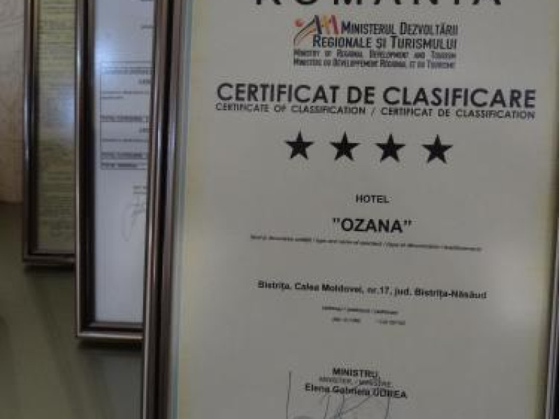 Want to take a rest and explore the city? Hotel Hotel Ozana is located in Bistrita. This hotel is located in walking distance from the city center.Want to take a rest and explore the city? Hotel Hotel Ozana is located in Bistrita. This hotel is located in walking distance from the city center.You can stop by the bar. Its time to have a nice meal! Stop by the restaurant. The hotel cafe is a nice place to have a snack. Free Wi-Fi on the territory will help you to stay on-line.If you travel by car, you can park in a parking zone. For business meetings, there is a conference hall and meeting and presentation facilities. If you want to make your journey even more comfortable, you can order a transfer. Accessible for guests with disabilities: the elevator helps them to go to the highest floors.At the guests disposal, theres also a laundry, dry cleaning, private check-in and check-out, ironing, a safe-deposit box and a concierge. The staff of the hotel speaks English, Spanish, Italian, German and French.You can stop by the bar. Its time to have a nice meal! Stop by the restaurant. The hotel cafe is a nice place to have a snack. Free Wi-Fi on the territory will help you to stay on-line.If you travel by car, you can park in a parking zone. For business meetings, there is a conference hall and meeting and presentation facilities. If you want to make your journey even more comfortable, you can order a transfer. Accessible for guests with disabilities: the elevator helps them to go to the highest floors.At the guests disposal, theres also a laundry, dry cleaning, private check-in and check-out, ironing, a safe-deposit box and a concierge. The staff of the hotel speaks English, Spanish, Italian, German and French.In the room, there is a TV, a mini-bar, a bathrobe and slippers. The room equipment depends on its category.In the room, there is a TV, a mini-bar, a bathrobe and slippers. The room equipment depends on its category.Guests are required to show a photo identification and credit card upon check-in. Please note that all Special Requests are subject to availability and additional charges may apply.