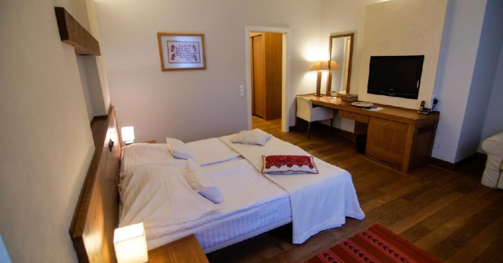 DESCRIERE CAMERE: 16 camere duble cu o suprafata de 22 mp, pat mare matrimonial sau twin, baie cu dus si uscataor de par, espresor de cafea, balcon, tv, minibar.