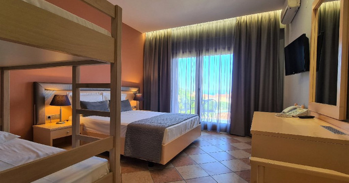 Dubla Standard, 19mp: max. 2 adulti, 1 pat dublu Dubla Superior, 19mp: max. 2 adulti + 1 copil pana in 12 ani, 1 pat dublu + 1 canapea, localizate la etajul 2 Tripla Standard, 21mp: max. 3 adulti, 1 pat dublu + 1 pat single, fara posibilitate de adaugare extra pat sau baby cot. Junior Suite, 28mp: max. 4 adulti, 1 pat dublu + 2 canapele sau canapea extensibila. Family Room, 27mp: max. 4 adulti, 1 pat dublu + 1 pat single + 1 canapea Family Room Economy, 25mp: max. 4 adulti, 1 pat dublu + 1 pat supraetajat Family Room Comfort, 31mp: max. 5 adulti, 1 pat dublu + 1 canapea + 1 pat single