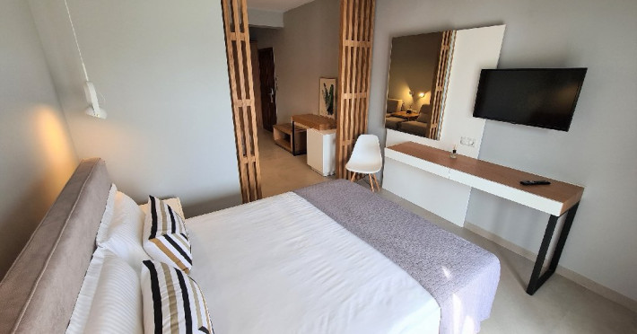 Localizare: Hotelul Palladium din Halkidiki este situat pe bratul Kassandra, la 90 de km de Salonic si la doar 3 km distanta de Kallithea, statiune ce ofera numeroase optiuni de petrecere a timpului liber. Hotelul se afla la doar 600 m de plajele cu nisip fin, premiate pentru apa lor de un albastru cristalin.