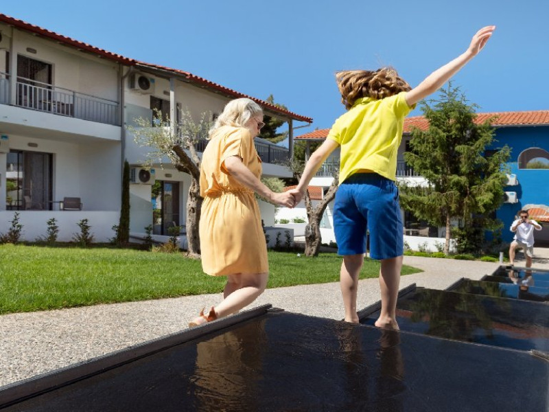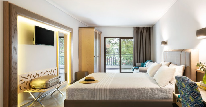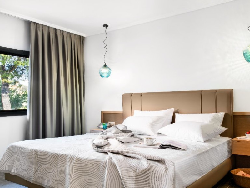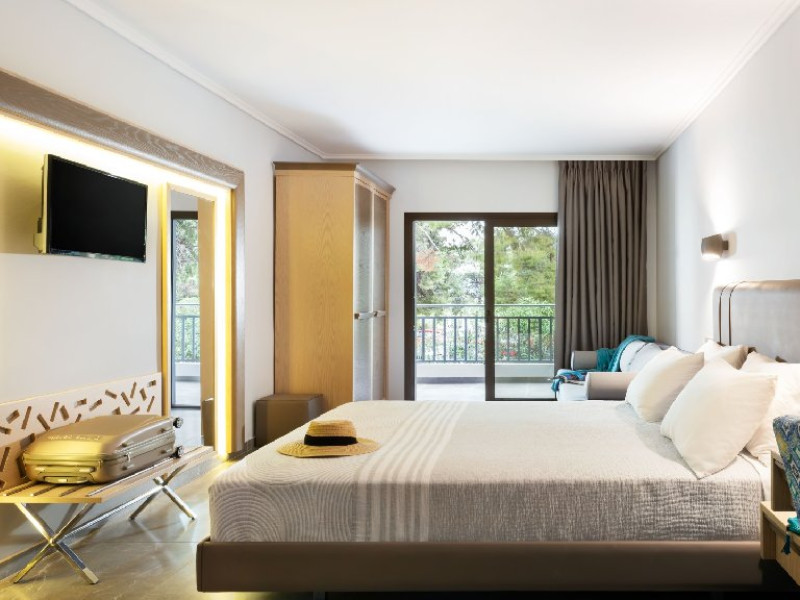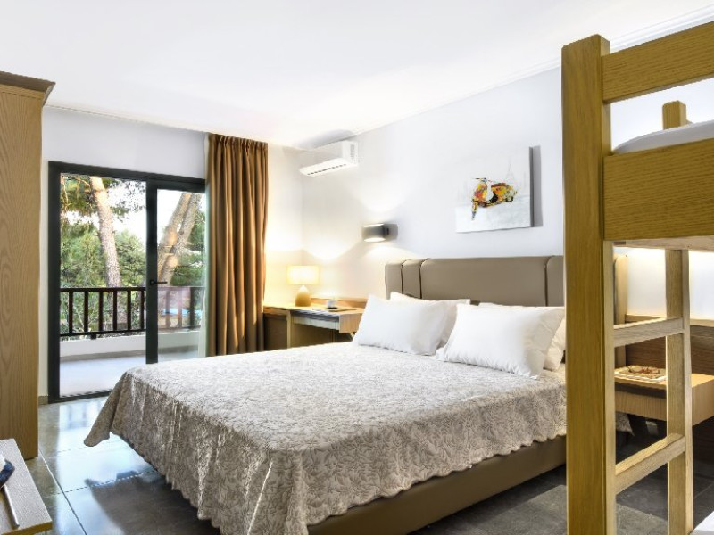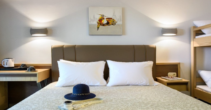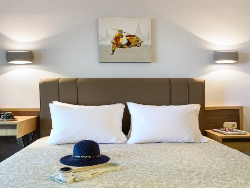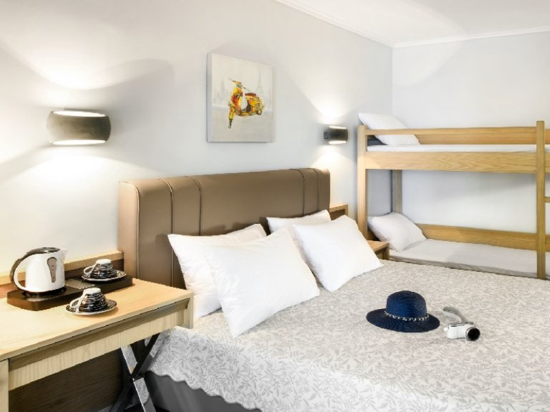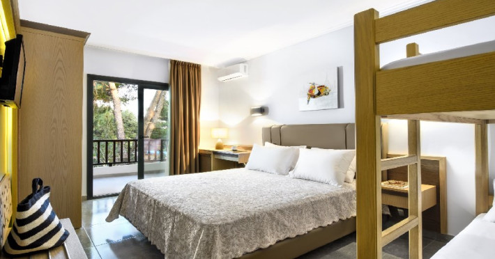 Facilitati camere: (155 de camere) TV, aer conditionat, internet Wi-Fi, uscator de par, fierbator, seif, telefon, frigider, baie cu dus si balcon. Camerele duble (20 m2): la parter sau la etaj; pat matrimonial. Camerele duble cu pat supraetajat (20 m2): pat matrimonial si pat supraetajat. Camerele duble superior (24 m2): pat matrimonial si canapea extensibila.. Camerele triple (20 m2): la parter sau la etaj; pat matrimonial si pat suplimentar. Suitele (35 m2): dormitor (paturi twin) si living cu canapea extensibila.