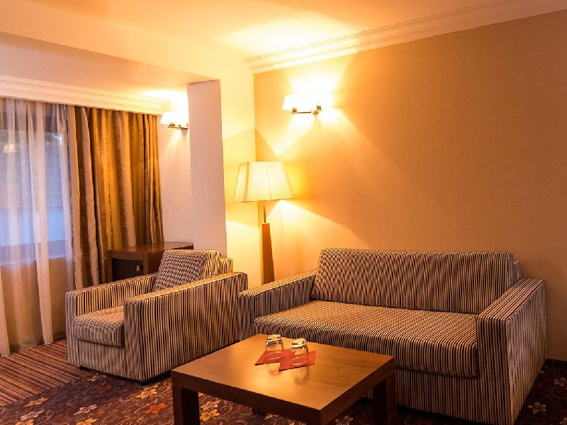 DESCRIERE CAMERE Toate camerele au in dotare: tv lcd, sistem de climatizare, seif, minibar, linie telefonica directa, uscator de par, internet wi-fi GRATUIT.