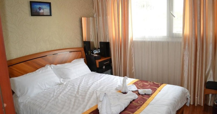 - 12 camere duble cu pat matrimonial, pentru cazare, ideale pentru familiile cu copii, bine izolate fonic si termic pentru a oferii intimitate si confort turistilor, mobilate cu un design unic deosebit, dotate cu instalatie de aer conditionat si incalzire, seif, televizor LCD-LED, minibar cu frigider, plase impotriva tantarilor, baie proprie in care gasiti cabina de dus cu hidromasaj si sauna, lavoar, wc;