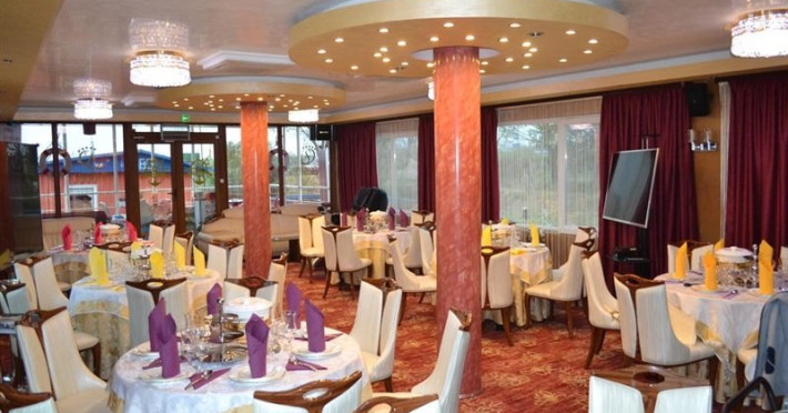 - restaurantul elegant de 120 m dotat cu televiziune prin satelit, sistem de sonorizare, calculator cu acces la internet, sala fiind pretabila organizarii de evenimente, sesiuni de team-building, conferinte. Restaurantul are ferestre generoase, pentru a admira privelistea de vis chiar si in timpul mesei;
