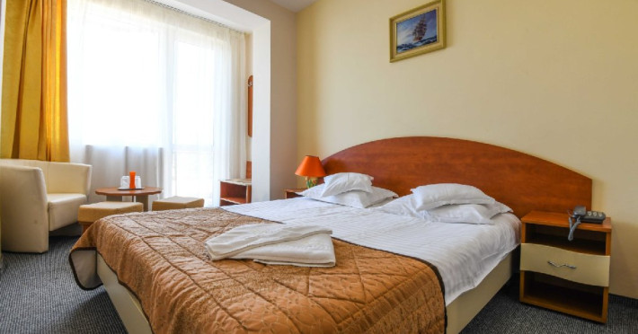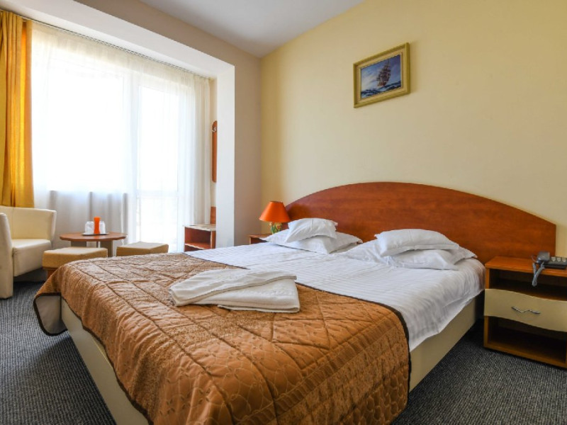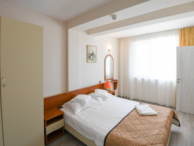 DESCRIERE CAMERE Dotari camere: Camerele sunt confortabile si sunt dotate cu internet wireles, Tv, minibar, aer conditionat, telefon, mobilier nou, modern, geamuri de termopan, baie proprie cu cabina de dus. Totul a fost realizat cu mare atentie si accent pe detalii. Culorile sunt in deplina armonie cu verdeata copacilor din jur si culoarea lacului si se caracterizeaza prin simplitate si calitate Numar total camere: 235 Camerele duble parter - cu o suprafata de 15 mp, au 2 paturi twin, fara balcon, AC, TV, internet, minibar, baie cu dus, telefon. Camerele de la etaj - cu o suprafata de 15 mp, au pat matrimonial sau 2 paturi twin, balcon, AC, TV, internet, minibar, baie cu dus, telefon. Apartamentele - cu o suprafata de 25 mp, sunt formate din living cu canapea extensibila si dormitor cu pat matrimonial, baie proprie cu dus, terasa la parter si balcon la etaj, TV, minibar, AC, telefon. Orientate spre nord, cu vedere la hotel Delta.