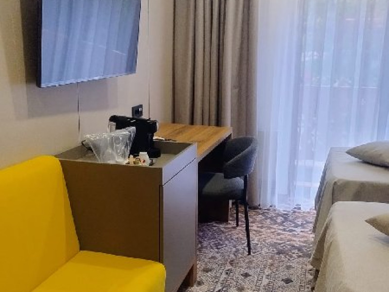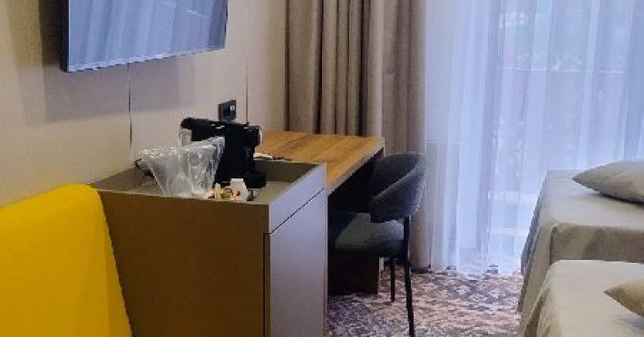 INFORMATII GENERALE Complexul Hotelier Rozmarin din Predeal continua traditia serviciilor de calitate din turismul montan care a adus faima industriei hoteliere romanesti. Cadrul natural spectaculos, cu o vedere panoramica asupra vaii superioare a Timisului si asupra Masivelor Postavarul si Piatra Mare si consistenta produsului turistic, recomanda Complexul Hotelier Rozmarin din Predeal ca o destinatie pentru toate anotimpurile. DESCRIERE UNITATE DE CAZARE Gazda primitoare, o adevarata casa departe de casa pentru toti oaspetii sai, Hotel Rozmarin reprezinta alegerea ideala atat pentru turismul de recreere sau refacere cat si pentru cel de afaceri si conferinte. FACILITATI UNITATE Receptie non stop, bar, salon de mic dejun, restaurant 250 locuri, terasa, spatiu barbeque, crama, loc de joaca pentru copii (castel gonflabil, pictura, mingi, soccer, ping-pong), restaurant, lift, facilitate pentru persoane cu dizabilitati, camera pentru bagaje, seif la receptie, fitness centre, sauna, sali de conferinta, internet, parcare. DESCRIERE CAMERE TV, minibar, baie cu dus, balcon, internet, uscator de par, telefon, aer conditionat, sistem de incalzire. LOCALIZARE Hotel Rozmarin este situat la iesirea din orasul Predeal spre Brasov. ATRACTII TURISTICE Ascensiuni montane (Vf. Piatra Mare 1.843 m), Masivul Postavaru, Muntii Bucegi cu Vf. Omu (2.505 m), cascada Tamina, Pestera de Gheata; obiective istorice din Brasov, Sinaia, Rasnov, Castelul Bran, Castelul Pelis si Pelisor, Castelul Cantacuzino, Muzeul Trenurilor (Sinaia). POLITICI Animalele de companie sunt permise contra cost. SERVICII DE MASA Se acorda in restaurant Rozmarin, organizat pe doua etaje (cu un spatiu central comun ce permite comunicare vizuala intre cele doua etaje),cu iesire catre terasa ce ofera privelistea muntilor. De asemenea restaurantul dispune de un spatiu de barbeque menit sa redea o atmosfera specific romaneasca. FACILITATI COPII Loc de joaca pentru copii (castel gonflabil, pictura, mingi, soccer, ping-pong). FACILITATI EVENIMENTE Hotelul dispune de 3 sali de conferinta. Dotari: capacitati intre 20 si 120 depersoane, internet wireless, flipchart, consumabile, tv si video, ecran de proiectie, laptop, videoproiector, spatii speciale pentru pauza de cafea.