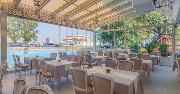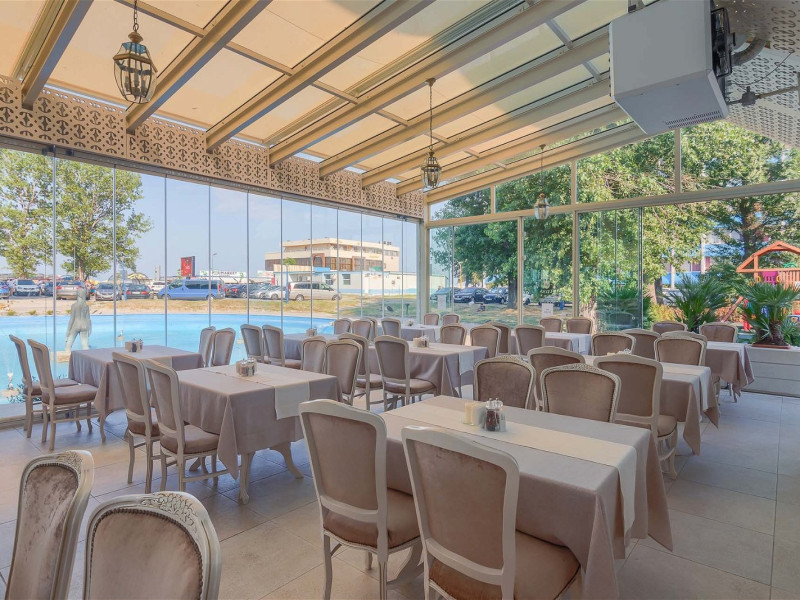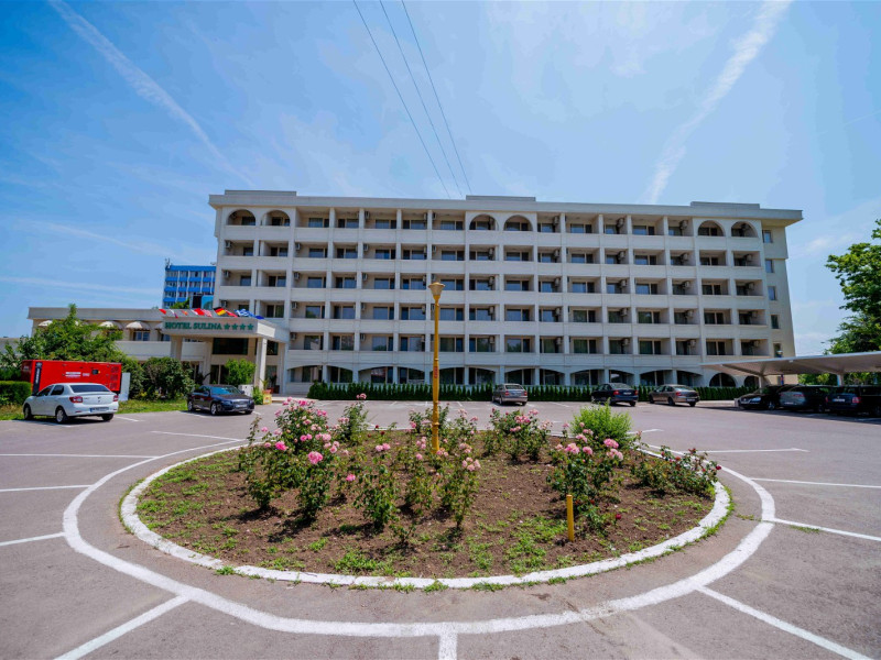 Hotel Sulina 4**** Mamaia, situat spre centrul statiunii, la 60 m de plaja. In prezent, ofera spatii de cazare de 3 si 4 stele, diferenta intre cele doua tipuri de camere fiind doar de spatiu â cele de 4 stele sunt mai mari, insa dotarile sunt aceleasi. Ca si noutate, Hotel Sulina Mamaia isi intampina acum oaspetii cu o noua arhitectura plina de eleganta, un restaurant nou cu meniu international, decorat in nuante ce oglindesc marea de afara, o frumoasa terasa exterioara, cu lift si cu un etaj suplimentar. Toate intr-un decor elegant, in care predomina albul, cu accente discrete de auriu si lila. Hotel Sulina este situat pe faleza, invecinandu-se cu Hotel Flora si Hotel Doina si la doar cateva minute de mers pe jos de Aqua Magic, Cazino sau Satul de Vacanta. Plaja in zona aceasta este larga, iar intrarea in apa este lina. Hotel Sulina ofera parcare privata gratuita, in limita disponibilitatii.74 de camere duble 3 stele, 72 de camere duble 4 stele, 10 apartamente Parter + 5 nivele, lift Restaurant Aqua (la parter si are capacitate de 80 de locuri, iesire la terasa dinspre mare) Restaurant Velvet (la etajul 1 si are capacitate de 180 de locuri, cu vedere la mare) Sala de conferinte Internet WiFi Loc de joaca pentru copii Camera bagaje Baby cot (gratuit) - in limita disponibilitatii Terasanbsp;Bar Dotari CamereToate spatiile de cazare au vedere laterala la mare ca urmare a amplasarii hotelului perpendicular pe tarmul marii. Camerele duble matrimoniale 3*, amenajate in culori primitoare, luminoase, au in dotare pat dublu (160/190 cm), aer conditionat, televizor LED, minibar, seif, baie cu dus, halate si papuci de baie, uscator par, balcon cu uscator haine si mobilat, internet wi-fi, telefon, pardoseala din gresie, plasa de tantari. In camera dubla matrimoniala se accepta cazarea a maxim 2 adulti si 1 copil 0-12 ani(neimpliniti). Spatiul din camera nu permite amplasarea unui pat suplimentar. Suprafata: 14 mp. Camerele duble superioare 4* au in dotare 2 paturi twin 90/190 cm, aer conditionat, televizor LED, minibar, seif, baie cu dus, uscator par, halate si papuci de baie, balcon cu uscator haine si mobilat, internet wi-fi, pardoseala din gresie, plasa de tantari. In camera dubla twin se accepta cazarea a maxim 2 adulti si 2 copil 0-12 ani(neimpliniti) intrucat se poate plasa un pat suplimentar. Suprafata 17 mp. Apartamentele sunt alcatuite din living cu canapea extensibila (160/200 cm extinsa) cu usa glisanta, o camera dubla superioara. baie cu cabina de dus si 2 balcoane. Se pot caza 5 persoane, dar nu mai mult de 4 adulti si 1 copil cu varsta mai mica de 6 ani. Suprafata: 36 mp.