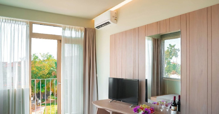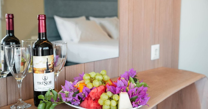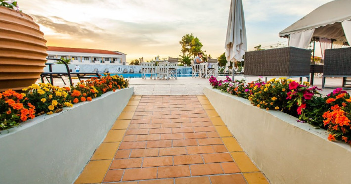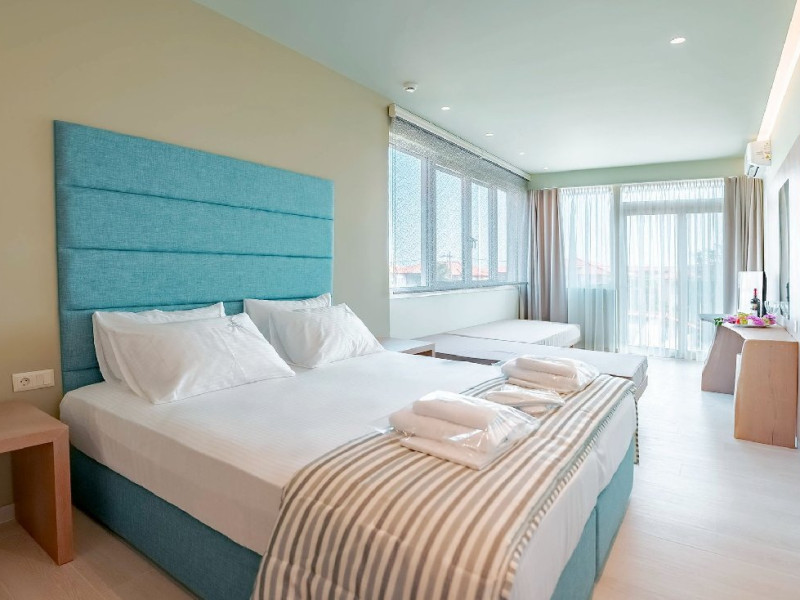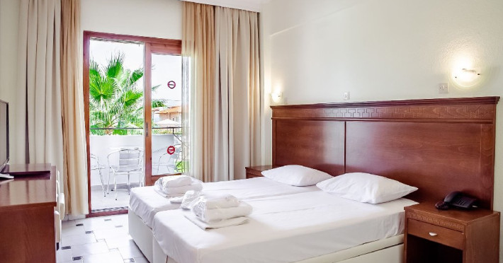 Facilitati hotel: receptie, bar si restaurant,gradina, piscina 25 m, camera pentru persoane cu dizabilitati, loc de joaca copii. prosoape plaja la piscina (contra cost), transfer aeroport (contra cost), serviciu trezire, masa ping-pong. Se ofera in fiecare camera la check in: sticla mare de apa in frigider, cos fructe, sticla mica vin.