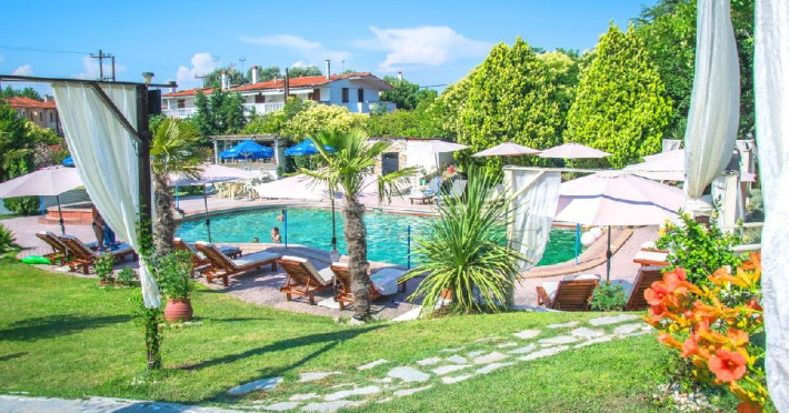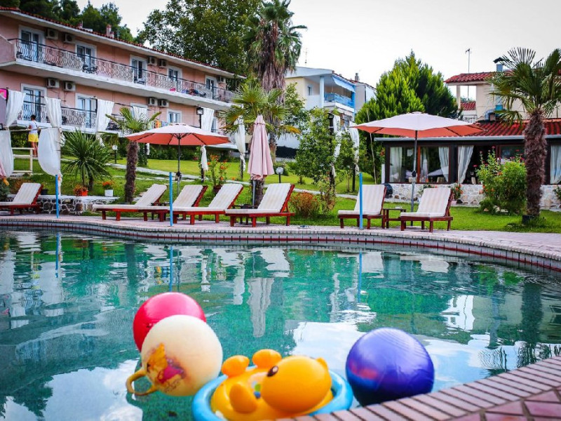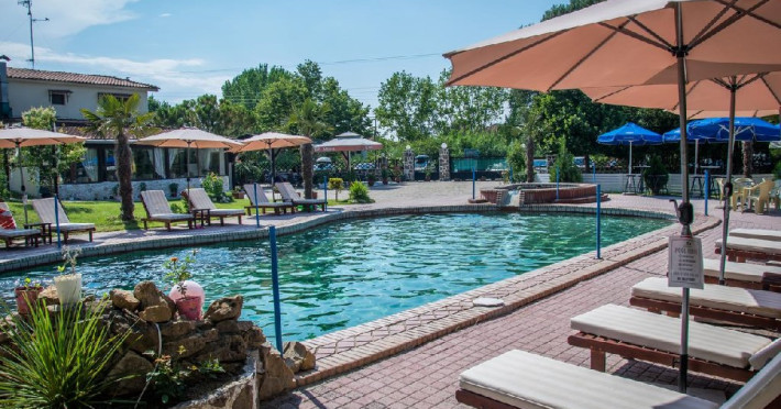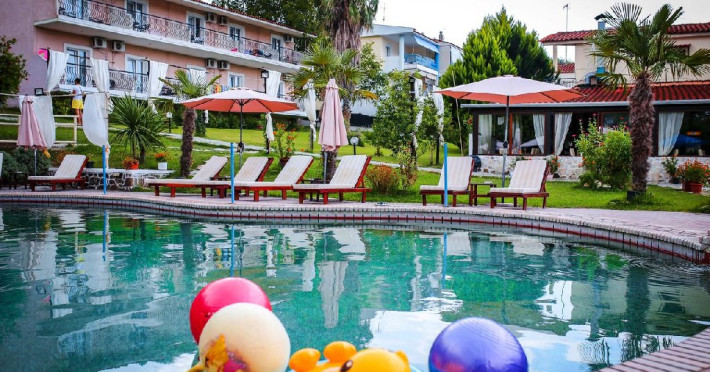 Locatie: Jenny Hotel se afla in zona de centru a statiunii Siviri, la 150 m distanta de plaja. Unitatea de cazare ofera o gradina imensa ce se intinde pe 14 hectare, inconjurata de o padure de conifere.