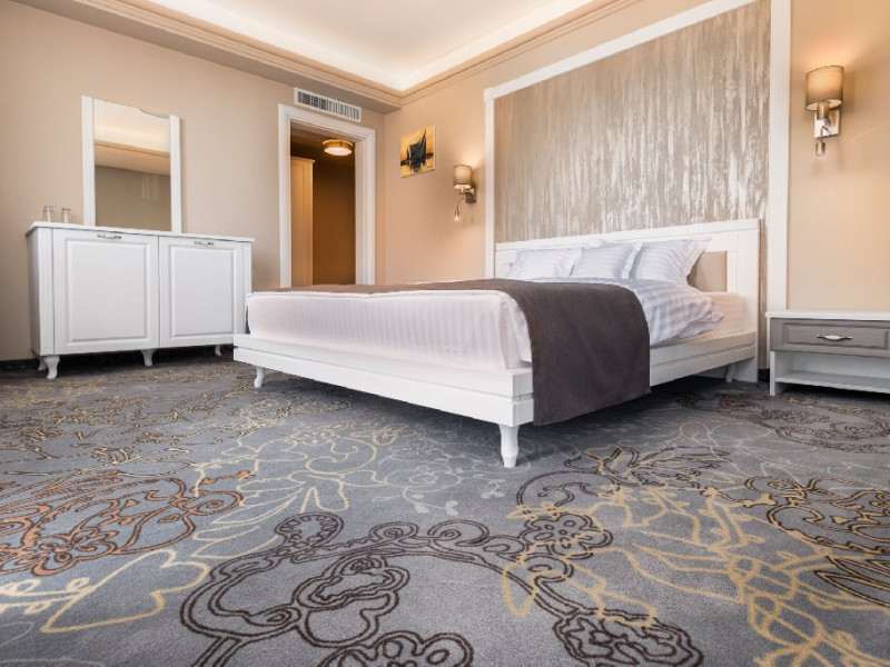 Dotari camere Camera Dubl are o suprafat de 20 mp ,TV LCD, sistem de climatizare individual, minibar, telefon, seif, balcon, baia este dotata cu dus sau cada, articole de toaleta gratuite (cosmetice de lux), uscator de par, halat de baie si papuci. Junior Suite este un apartament modern si elegant format din living si dormitor matrimonial cu o suprafat de 36 mp, TV (LCD),telefon, seif, minibar, usctor de pr, cosmetice si seturi cosmetice (vanity set, casc de dus, buretel de pantofi, set ata ac), halat,papuci de unic folosint.Sunt situate la etajele superioare si dispun de o chicineta complet utilata in living, iar baia este prevazuta cu cada si doua chiuvete.