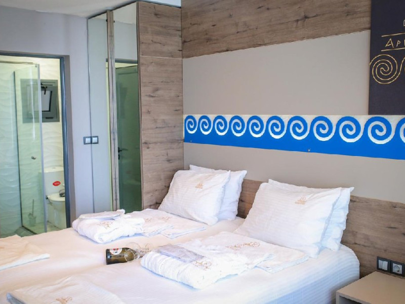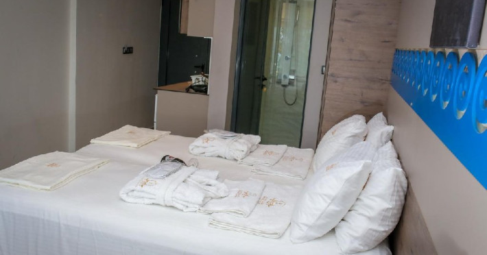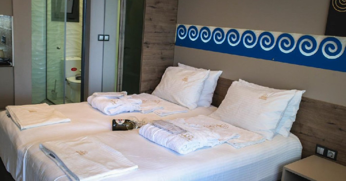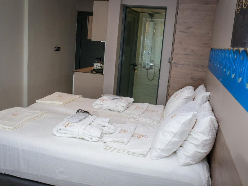 Facilitati camere: TV, AC, internet, papuci si halat de baie, chicineta, frigider, seif, fierbator, uscator de par, baie cu dus si balcon. Marea majoritatea a camerelor au vedere la mare. Camerele beneficiaza de pat matrimonial sau 2 paturi twin si canapea extensibila. Curatenie zilnica, lenjeria si prosoapele se schimba la 3 zile.