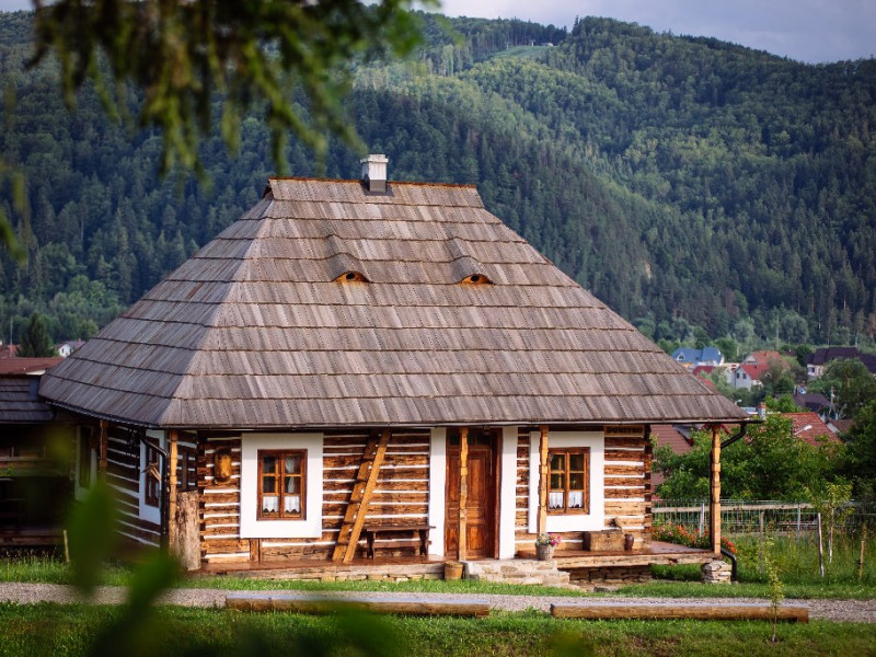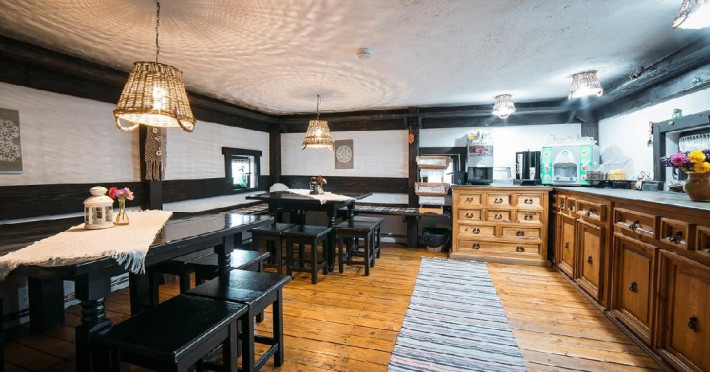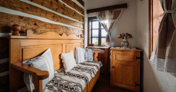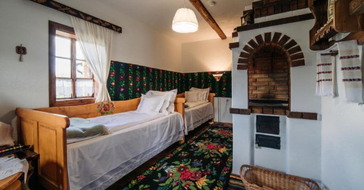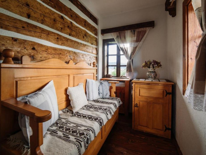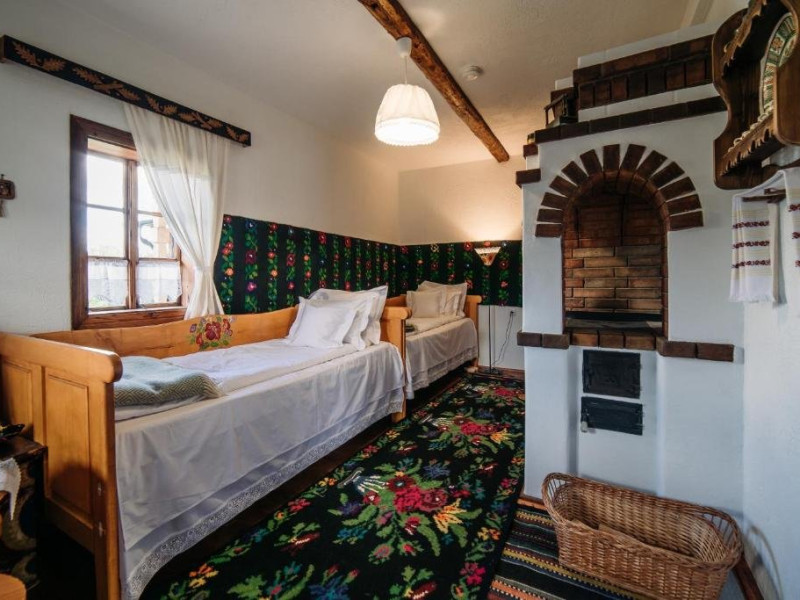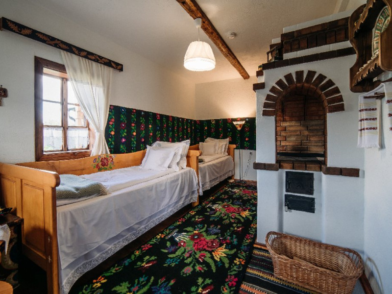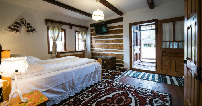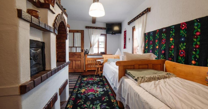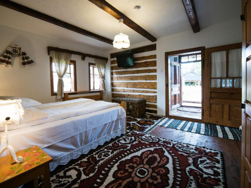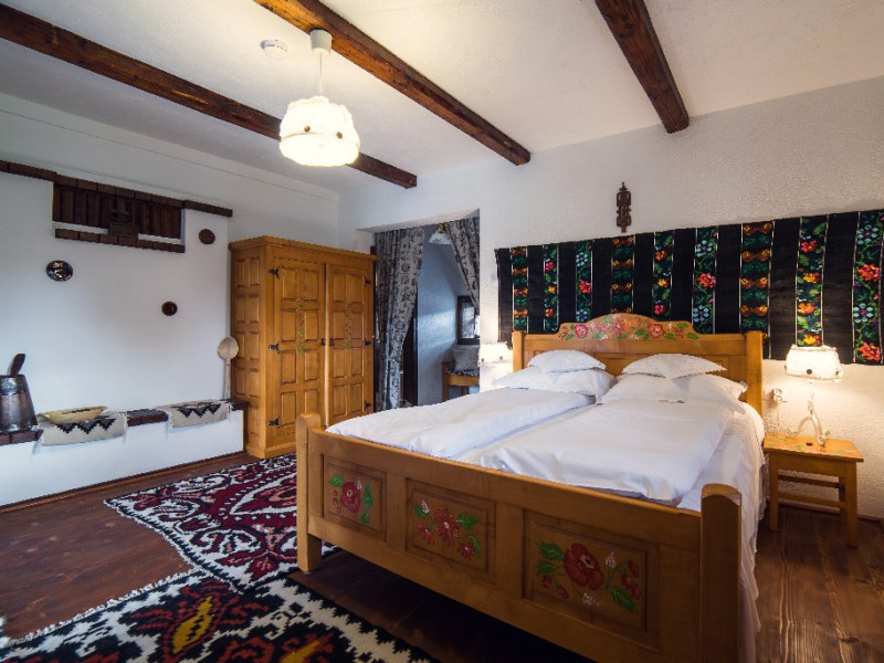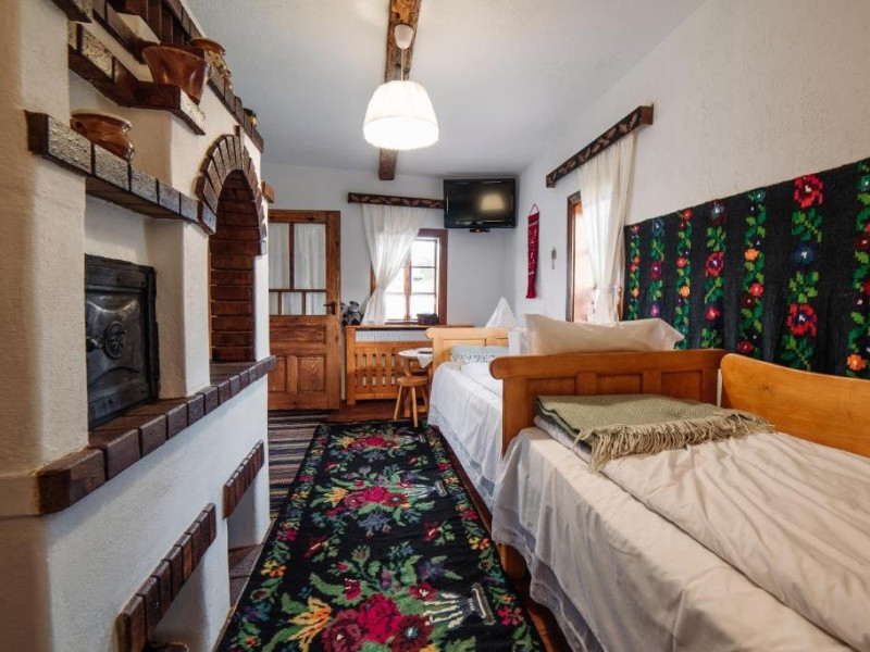 La Roata - Casa Dumitru a fost stramutata din Manastirea Humorului, cu o vechime de 110 ani si o suprafata de 52 mp, formata din doua camere semidecomandate si o baie comuna, cu cada. O camera are pat matrimonial; cea de-a doua are doua paturi single.