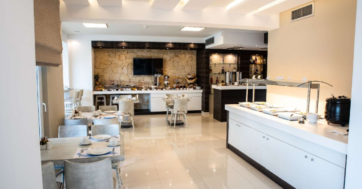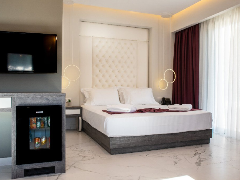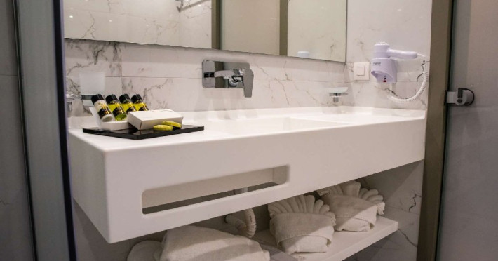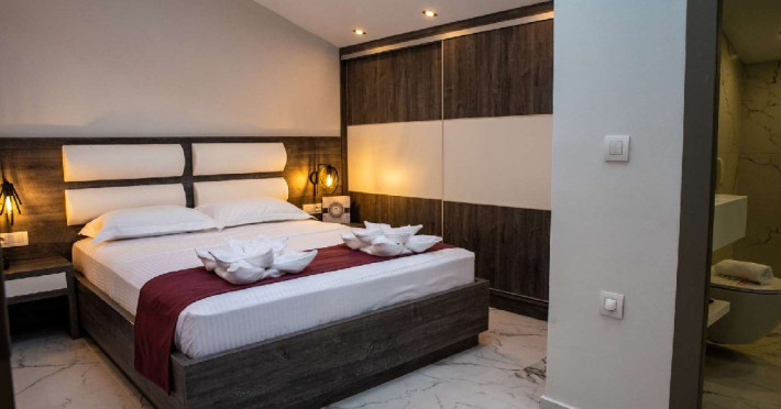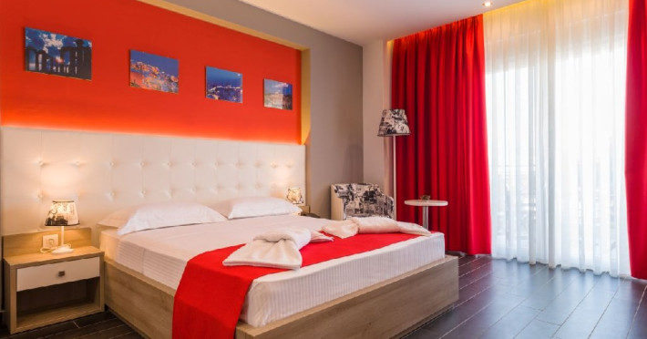 Facilitati camere: Hotelul dispune de 35 de camere spatioase si 6 apartamente prevazute cu: AC, TV, minifrigider, telefon, WiFi, uscator de par, seif, fierbator sau expresor, baie cu dus, balcon.