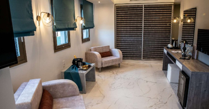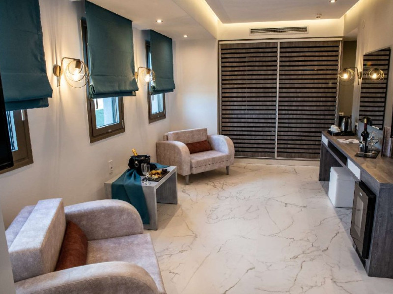 Deluxe Suita (36 m2): pat matrimonial si zona de living. Se ofera: halat de baie si papuci.