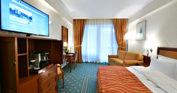 Lux Garden is located at the bottom of the ski slope, close to the gondola station of Azuga in Prahova Valley. Free public WiFi and free guarded parking are available. Guests benefit from free access to the spa center with a pool, dry and wet saunas and a fitness room. Ski passes can be requested at the front desk for an extra fee, and snowboard and ski classes can also be arranged. Located at an altitude of 3258 feet above sea level and surrounded by the Bucegi Mountains, Lux Garden offers rooms with mountain view and balconies. Guests can enjoy skiing, snowboarding and sleighing and in the summertime go mountain biking or hiking. The property can recommend ski equipment rentals and ski and snowboarding schools. The Lux Garden features a restaurant with international cuisine, a piano bar and a terrace with view over the Bucegi Mountains. Delicious desserts and fine drinks are served there, and you can taste wines from an extensive collection. Hotel Lux is 19 mi away from Bran Castle, which is known as Draculas Castle, and 12 mi from the Peles Castle in Sinaia. Bucharest International airport is 77 mi away, and a paid airport transfer can be arranged with the property.WiFi is available in all areas and is free of charge. Free private parking is available on site (reservation is not needed). Pets are not allowed. Children of all ages are allowed. Children 3 and under stay for free when using an available crib. Children 6 and under stay for free when using an existing bed. Children from 7 to 11 years old stay for 45Â lei per person, per night when using an existing bed. Children from 12 to 17 years old stay for 165Â lei per person, per night when using an existing bed. Children from 3 to 17 years old stay for 75Â lei per person, per night when using an available extra bed. Any type of extra bed or crib is upon request and needs to be confirmed by management. Additional fees are not calculated automatically in the total cost and will have to be paid for separately during your stay.Checkin Time: 17:00Checkout End Time: 12:00Hotel important information: In response to the coronavirus (COVID-19), additional safety and sanitation measures are in effect at this property. Due to the coronavirus (COVID-19), this property is taking steps to protect the safety of guests and staff. Certain services and amenities may be reduced or unavailable as a result. Spa and gym facilities at this property are unavailable due to the coronavirus (COVID-19).