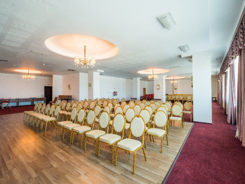 Sala Ovidiu: Sala de conferinte \\\Ovidiu\\\ are o capacitate de 250 de locuri si este ideala pentru conferinte si seminarii nationale si internationale. Sala de conferinte Ovidiu se afla la etajul 1 al hotelului si poate fi impartita in 2 sau 3 sectiuni separate prin panouri speciale, care pot fi inchiriate. Sala de conferinte dispune de echipament tehnice complet si, la cerere, poate fi dotata cu sistem de traducere simultana cu 250 de posturi. La intrarea in sala este amenajat un spatiu pentru coffee break-uri dotat cu mese, scaune si canapele confortabile.