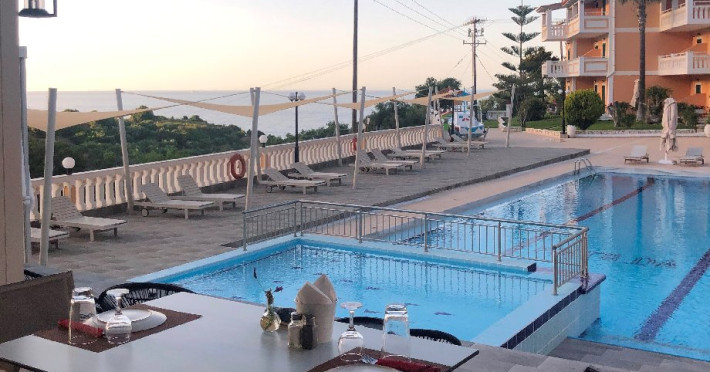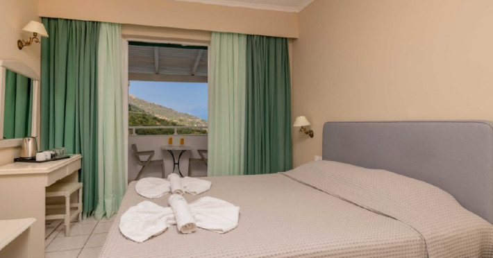 Localizare hotel: Hotelul Matilda 4* este un hotel traditional, construit in zona plina de natura cu vegetatie abundenta in Vasilikos, una dintre cele mai frumoase zone al insulei Zakynthos, habitatul parcului marin al testoasei Caretta-Caretta.In apropiere se afla faimoasele plajei pitoresti Porto Azzuro, Saint Nikolas, Porto Roma.