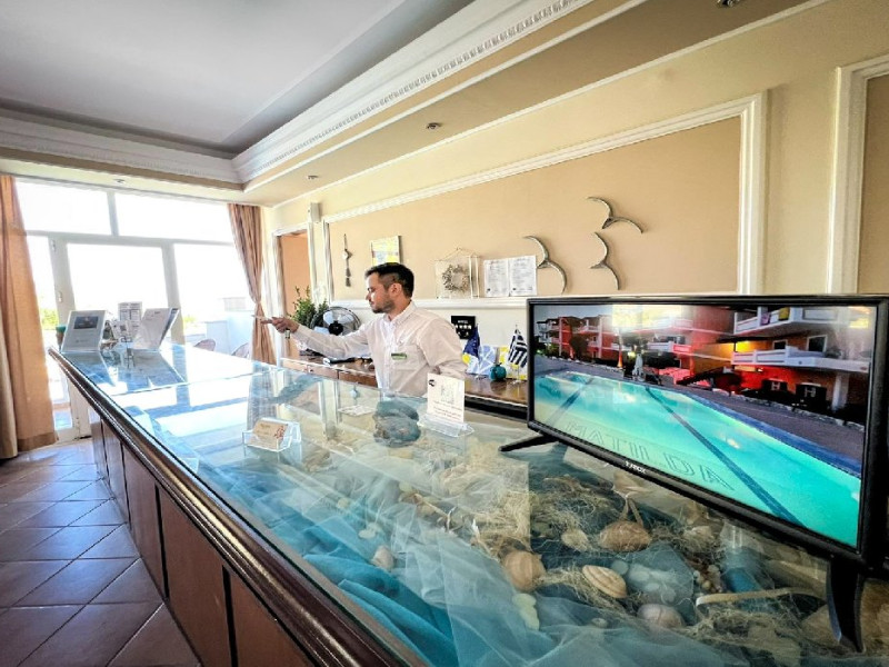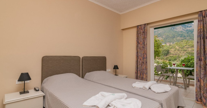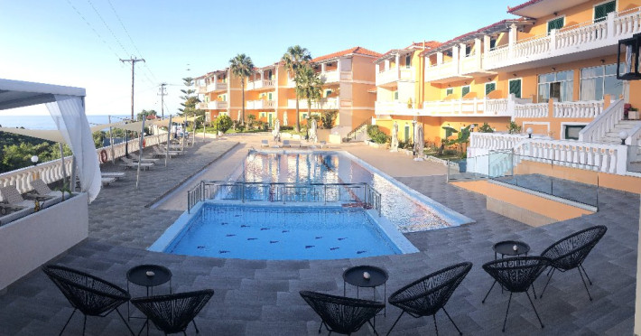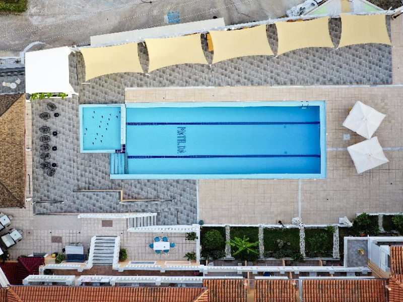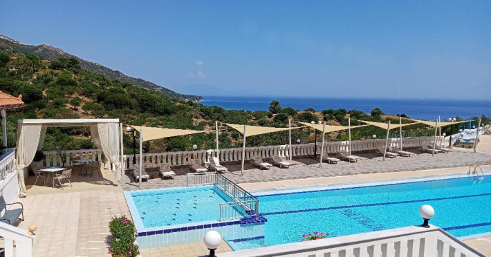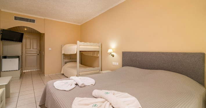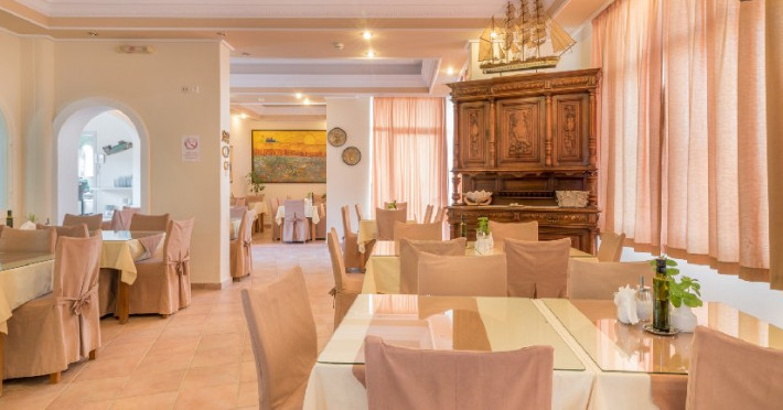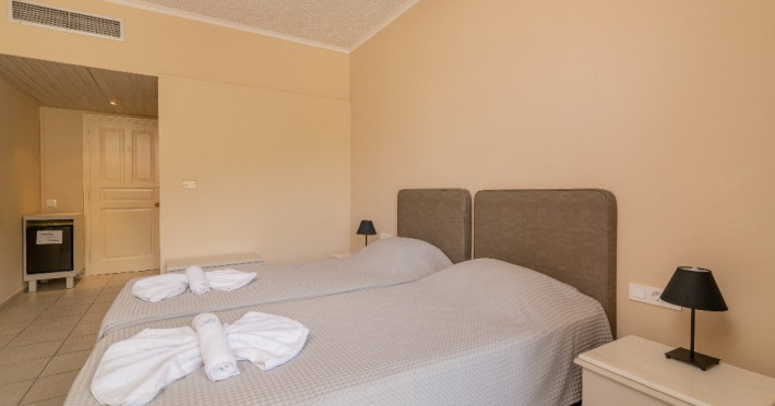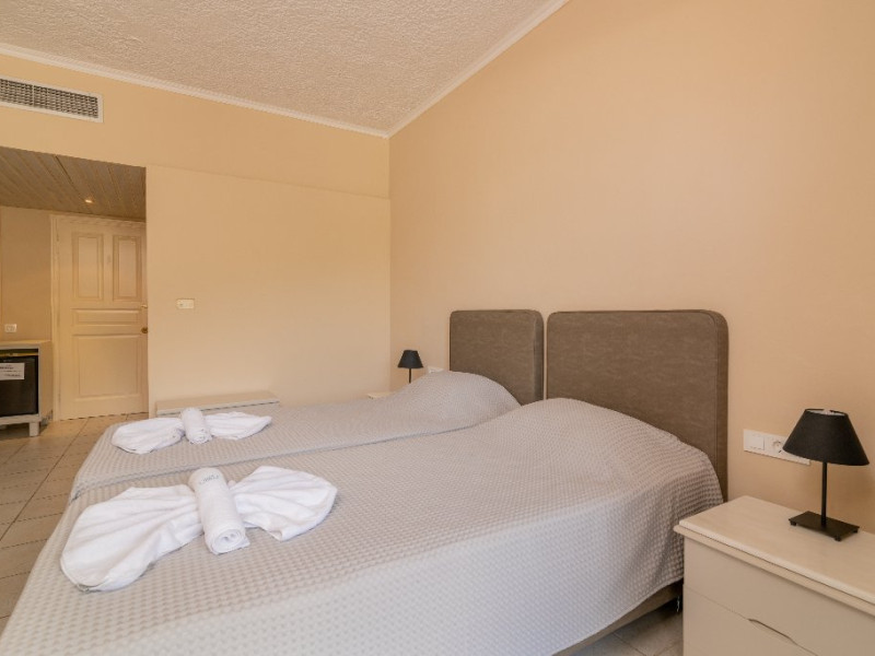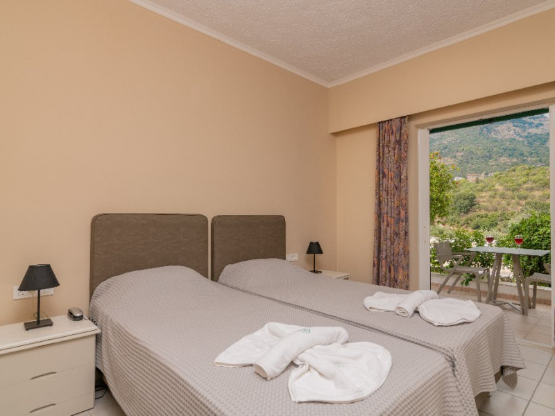 Facilitati Hotel: Hotelul dispune de 50 camere in total, receptie cu lobby si TV, aer conditionat si incalzire, piscina pentru adulti si piscina pentru copii, umbrele si sezlonguri gratis la piscina, lobby bar si bar la piscina, restaurant, loc de joaca pentru copii, centru de conferinte, parcare privata gratis, propria gradina si livada de masline.