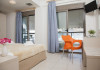 Facilitati camere: Cele 25 de camere sunt dotate cu: AC, TV, WiFi, telefon, facilitate ceai/cafeaseif, frigider, feon, baie cu dus si balcon/veranda. Camerele single: 15 m2 Camerele duble: 18 m2 Camerele triple: 20 m2 Camera Family: 25 m2 - 2 dormitoare
