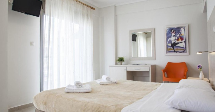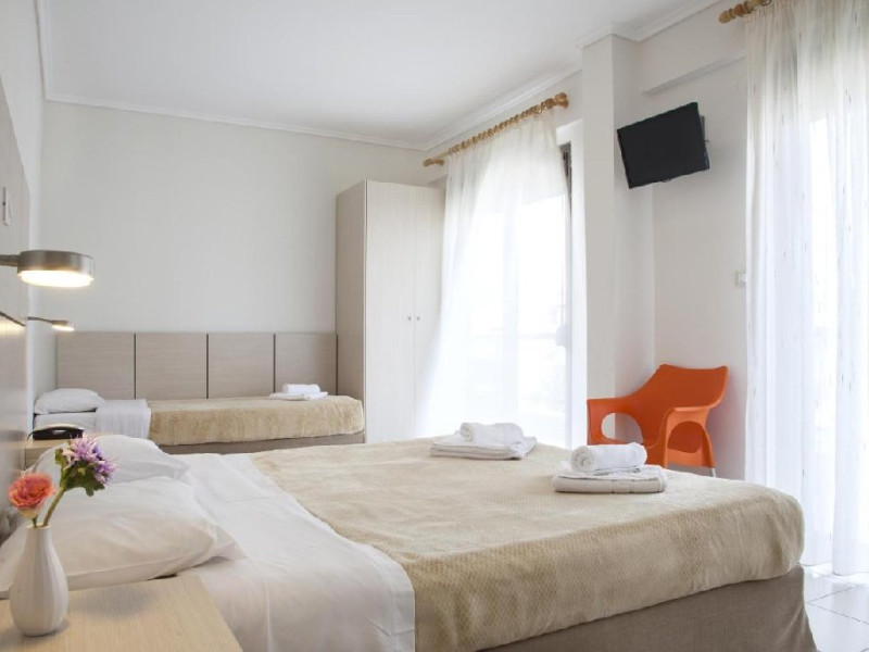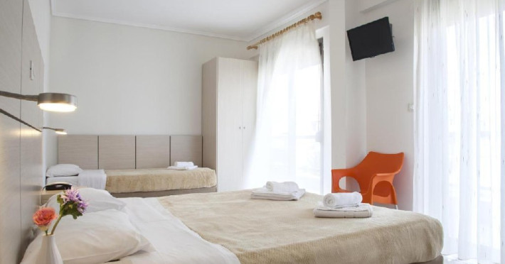 Locatie: Mavridis Hotel se afla in statiunea Nea Flogita, statiune ce se bucura de apa cristalina si nisip, dar e bine de stiut ca la iesirea din statiune fundul marii devine pietros. Statiunea este una linistita, perfecta pentru cei ce doresc sa se relaxeze departe de zgomotul cotidian. Unitatea de cazare se afla pe malul marii, la cativa pasi distanta de centrul statiunii.