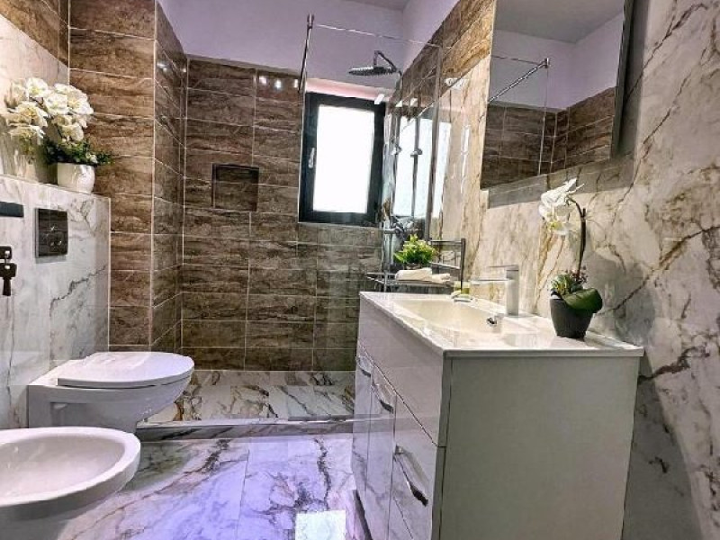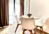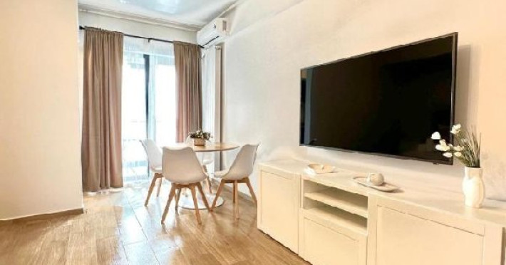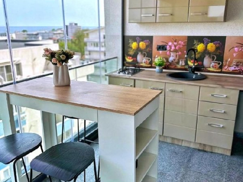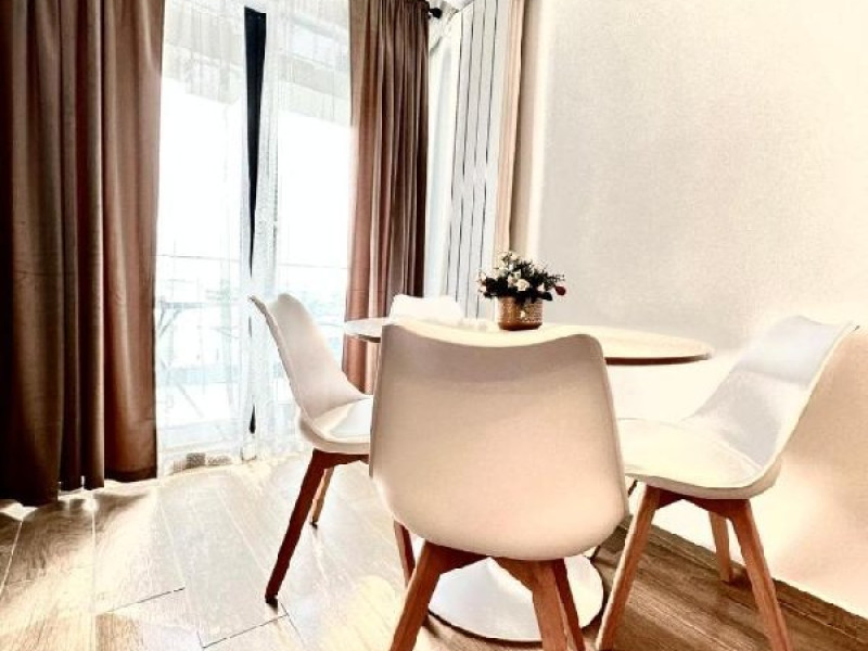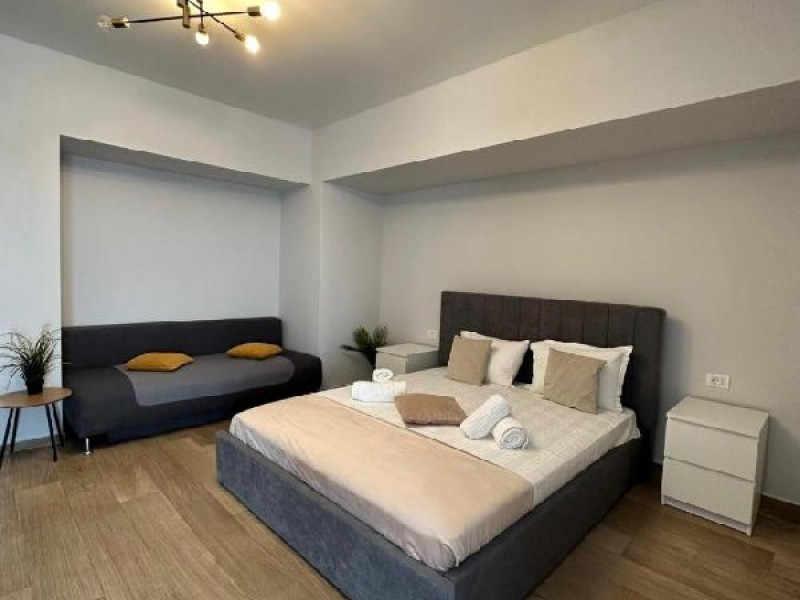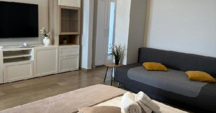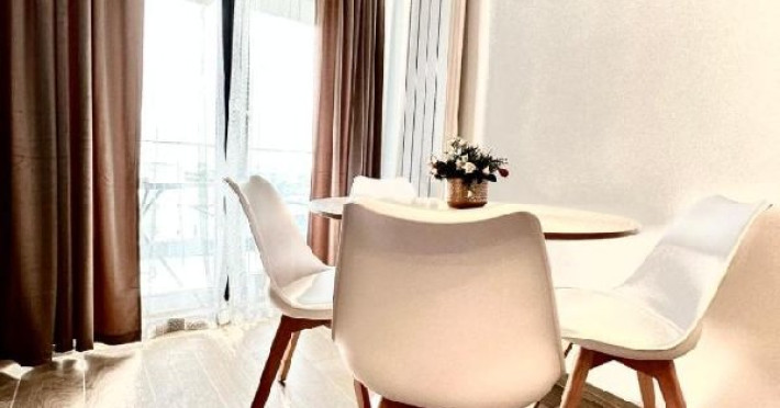Apartamentul este format din 2 dormitoare cu pat matrimonial, are AC in ambele camere, bucatarie, fara living si fara balcon. Bucataria este dotata cu plita, cuptor electric, hota, frigider, cuptor cu microunde, espressor, sandwitch maker, fiebator de apa, prajitor de paine si toate ustensilele pt bucatarie. Are o capacitate maxima de 4 adulci si 2 copii pana in 7 ani.