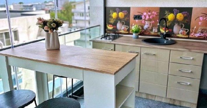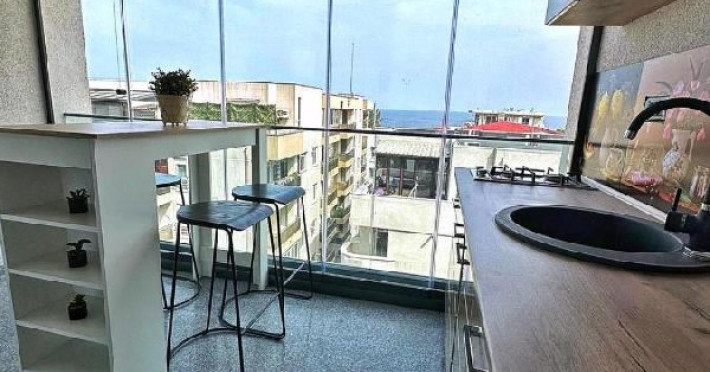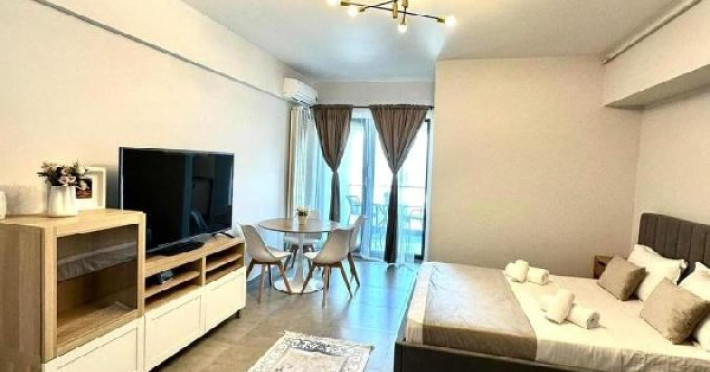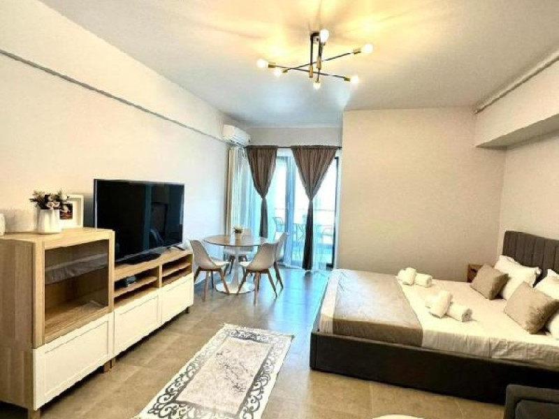 Studio-urile au balcon dotat cu masa si scaune, are un pat matrimonial si o canapea extensibila, baie privata, internet, AC. Are o capacitate maxima de 3 adulti si 1 copil pana in 7 ani.
