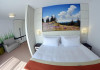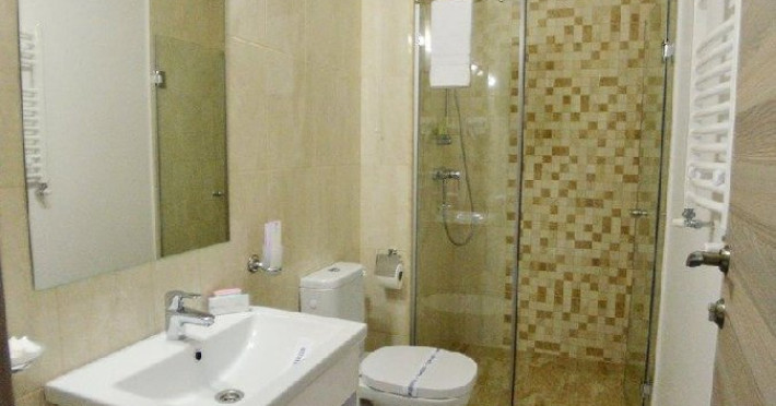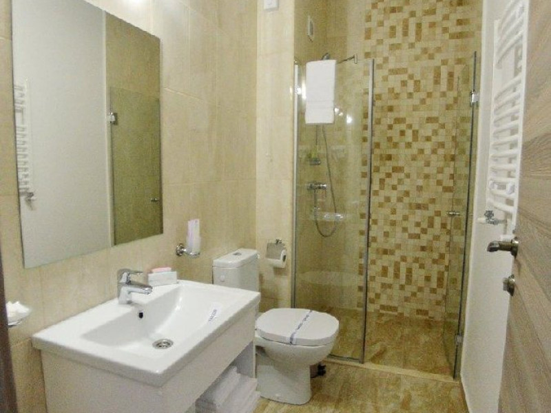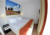 DESCRIERE CAMERE Dotari camere: aer conditionat, TV, minibar, seif, baie cu dus, balcon -cu mobilier de terasa- valabil numai pentru camerele cu vedere la mare, internet, uscator de par, sistem de acces in camera pe baza de cartela, cosmetice hoteliere. Numar total camere: 50 Duble: 46 - Camera dubla king matrimoniala/twin (vedere oras/mare) are o suprafata de aproximativ 16 mp, pat matrimonial (180/190 cm) sau doua paturi individuale (80/190 cm) si o canapea extensibila. Recomandare: Camera Dubla poate gazdui 2 adulti si 2 copii sau 3 adulti. Dotari: sistem de acces in camera pe baza de cartela, aer conditionat, TV LCD, telefon, seif, baie cu cabina de dus, uscator de par, cosmetice hoteliere, minibar contra cost, balcon cu mobilier de terasa (valabil numai pentru camerele cu vedere la mare). Camerele cu vedere la oras nu au balcon.