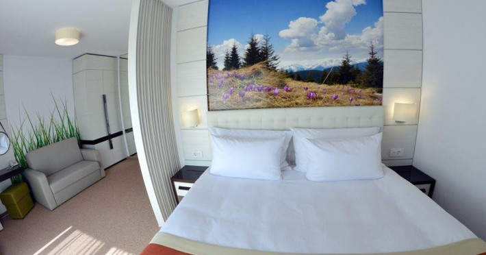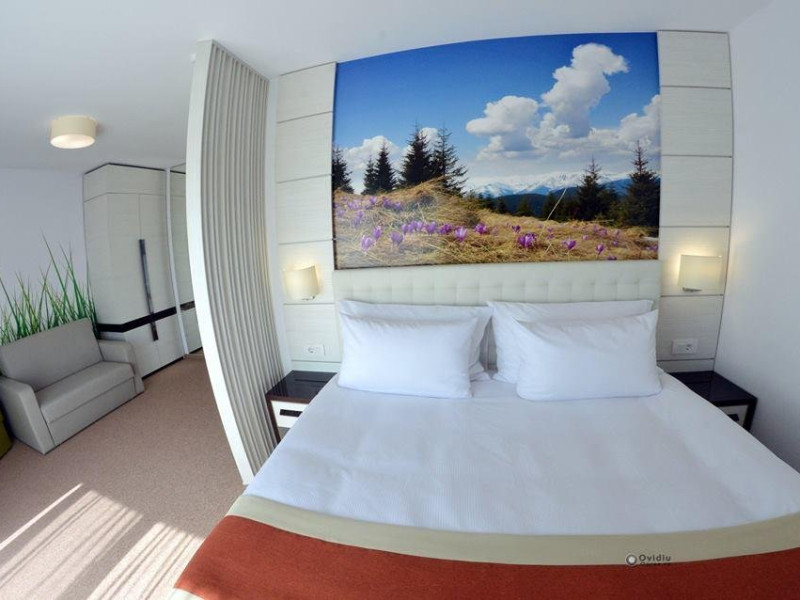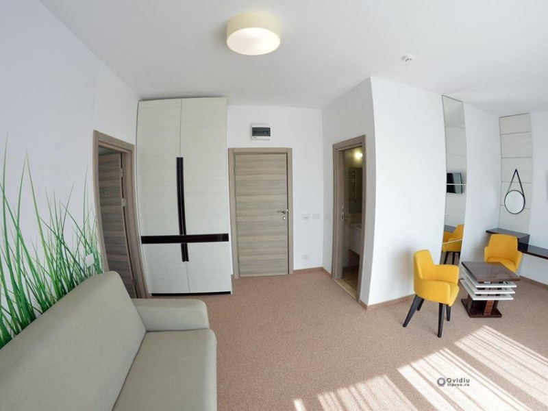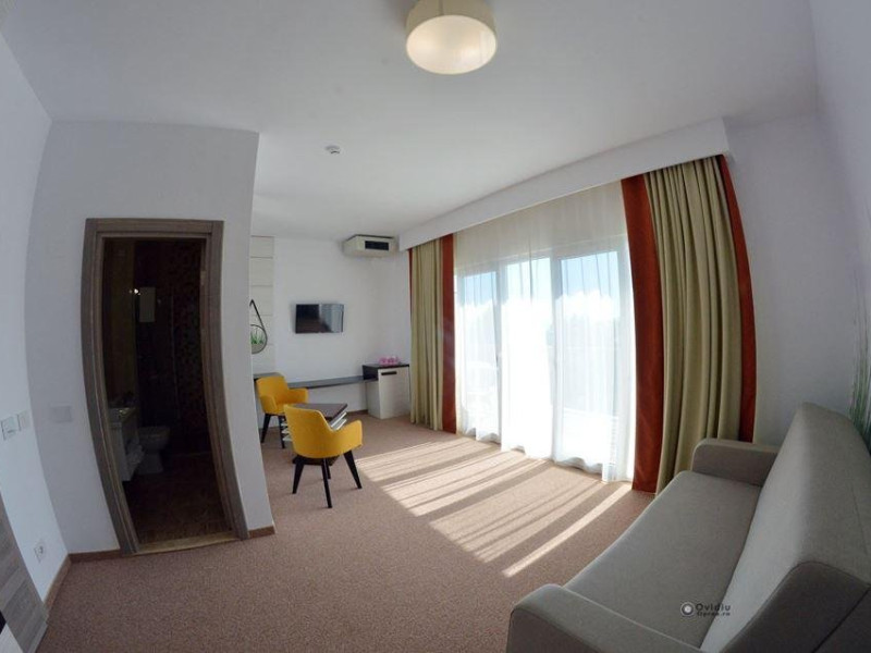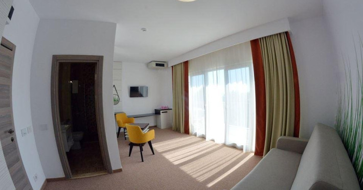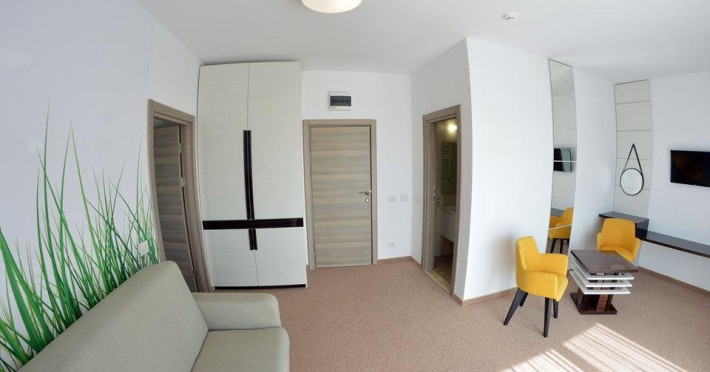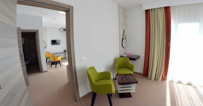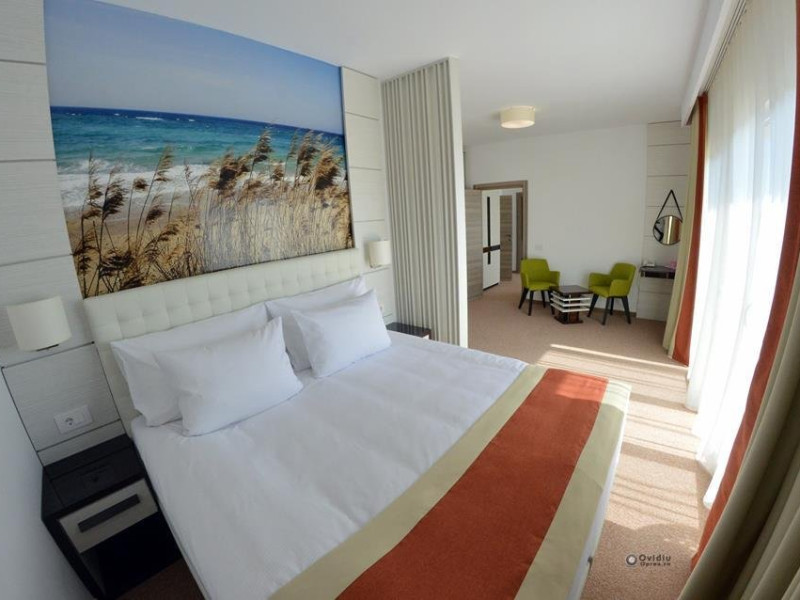 Apartamente junior: 4 - este compus dintr-o camera de zi, cu canapea extensibila si dormitor cu pat matrimonial, avand o suprafata de aproximativ 30 mp. Fiecare camera dispune de baie proprie si balcon. Recomandare: Junior Suite este destinat cazarii a 2 adulti si 2 copii sau 3 adulti. Dotari: sistem de acces in camera pe baza de cartela, aer conditionat, TV LCD, telefon, minibar contra cost, seif, baie cu cabina de dus, uscator de par, cosmetice hoteliere, balcon cu mobilier de terasa, uscator de rufe.