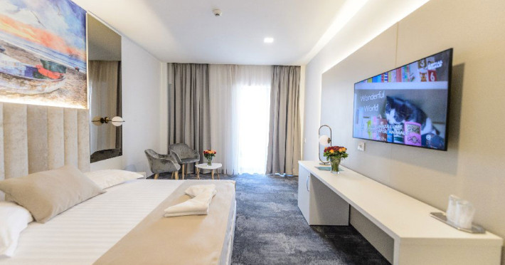 Mirage Beach Spa Hotel, clasificat la 4 stele, oferÄ oaspeÈilor o experienÈÄ de neuitat în inima staÈiunii Eforie Nord. Hotelul se aflÄ pe esplanada Belona, la câÈiva paÈi de plajÄ, ceea ce îl face ideal pentru cei care doresc sÄ se bucure de soare Èi mare. Cu servicii de cazare Èi restauratie la standarde internaÈionale, hotelul îÈi propune sÄ ofere confort Èi relaxare tuturor vizitatorilor. Camerele hotelului sunt dotate cu facilitÄÈi moderne Èi oferÄ opÈiuni variate, inclusiv camere cu vedere spre mare, unde oaspeÈii pot admira rÄsÄritul de soare, Èi camere cu vedere spre lacul Belona, care oferÄ o priveliÈte liniÈtitoare la apus. Fiecare camerÄ este conceputÄ pentru a asigura un sejur plÄcut, având în vedere confortul Èi relaxarea oaspeÈilor. Ãn apropierea hotelului, vizitatorii pot explora diverse atracÈii locale, inclusiv plaja, care este la doar câÈiva paÈi distanÈÄ, Èi zona centralÄ a staÈiunii, accesibilÄ pe jos în aproximativ 15 minute. Eforie Nord oferÄ o gamÄ variatÄ de activitÄÈi recreative Èi culturale, ideale pentru toate vârstele. Ãn ceea ce priveÈte mesele, hotelul dispune de un restaurant care serveÈte preparate delicioase, pregÄtite cu ingrediente proaspete, oferind oaspeÈilor o experienÈÄ culinarÄ deosebitÄ. Fie cÄ este vorba de un mic dejun energizant sau o cinÄ rafinatÄ, Mirage Beach Spa Hotel se asigurÄ cÄ fiecare masÄ este o plÄcere.