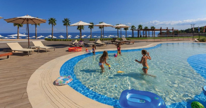 Locatie: Miraggio Thermal Spa Resort este un resort de lux cu o suprafata de aproape 13 hectare. Unitatea de cazare se afla pe malul marii in statiunea Halkidiki. Facilitati camere: Cele 300 de camere sunt decorate in tonuri calde, cu mobilier modern: aer conditionat, seif, frigider si minibar, TV, internet Wi-Fi, telefon, baia cu cada sau dus, balcon cu vedere completa sau partiala la mare sau gradina. Camera standard: 34 - 36 m2 Junior Suita: 37 - 39 m2 Suita Junior Family: 43 - 45 m2 Premium Junior Suite: 37 -39 m2 Suita cu piscina privata: 79 m2 - dormitor si living. Suita Duplex cu piscina privata: 87 - 89 m2 - dormitor si living.