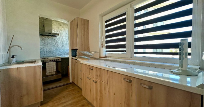 Apartamentrul este amplasat la etajul 3,pe strada Rozelor si ofera un spatiu luminos si bine compartimentat,potrivit atat pentru cupluri,cat si pentru familii. Locuinta dispune de doua camere:un dormitor cu pat matrimonial si o camera cu pat de o persoana.Fiecare camera este dotata cu fotolii extensibile,oferind locuri suplimentare de dormit. Livingul este integrat cu bucataria open-space,complet utilata,creand un spatiu primitor pentru relaxare si luat masa. Apartamentul beneficiaza de baie proprie cu cada si parcare gratuita ,asigurand tot confortul necesar pentru un sejur fara griji. Locatia permite acces rapid catre plaja,restaurante si magazine.