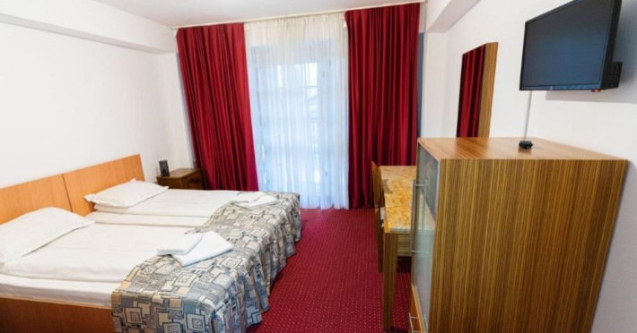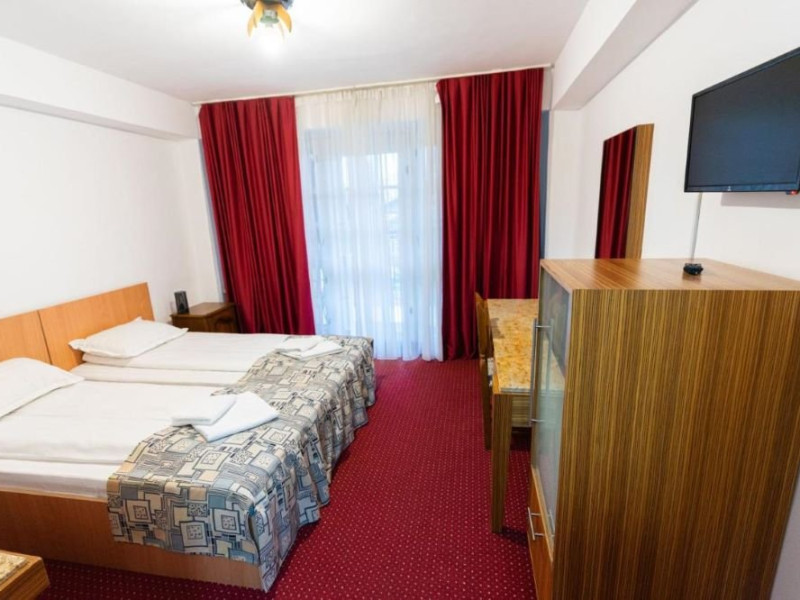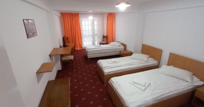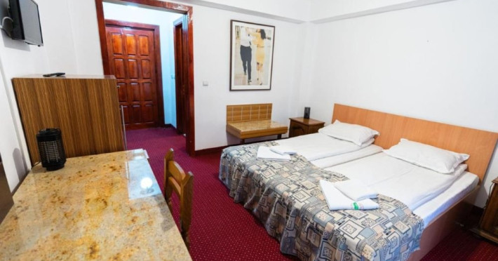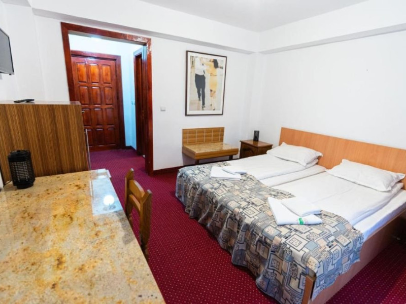 Dotari camere: Camere duble (twin/ matrimoniale): TV, minifrigider, wi-fi, fier de calcat, uscator de par, baie proprie cu cada, Camera twin confort: are aceleasi dotari, dar beneficiaza de paturi extra lungi si balcon. Camera tripla: 3 paturi de o persoana, tv, minifrigider, fier de calcat, uscator de par, baie proprie cu cada Camera cvadrupla: este spatioasa, are 4 paturi de o persoana, balcon, TV, minifrigider, wi-fi, fier de calcat, uscator de par, baie proprie cu cada Apartament cu 1 dormitor: 40 de mp, cu 2 camere: dormitor cu pat matrimonial si living cu canapea de tip matrimonial. TV, minifrigider, wi-fi, fier de calcat, uscator de par, baie proprie cu cada.