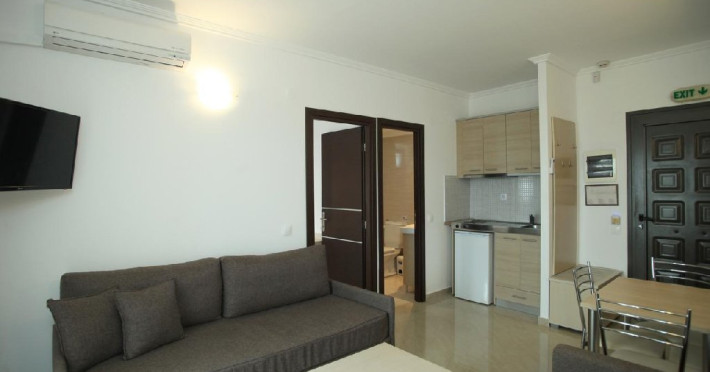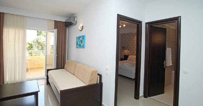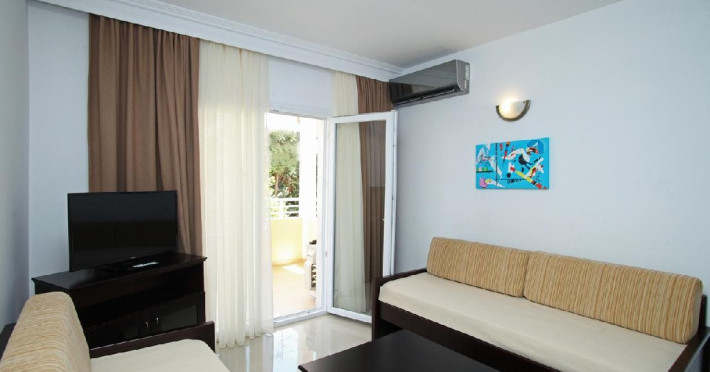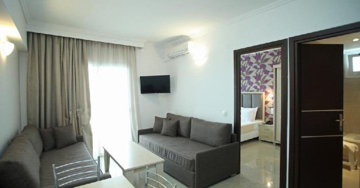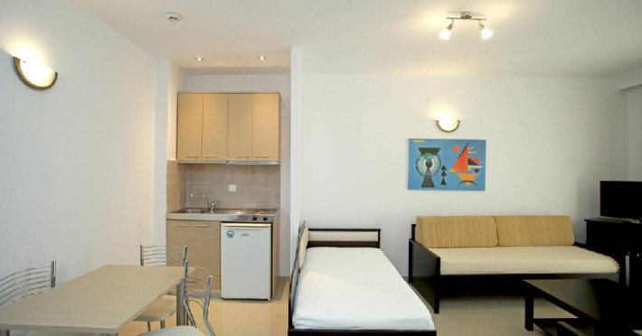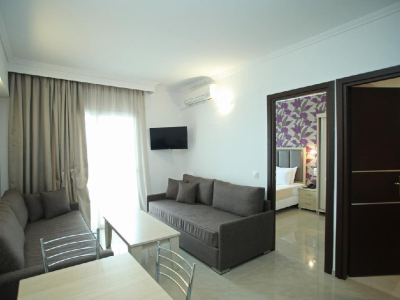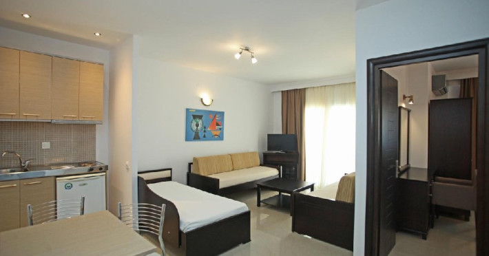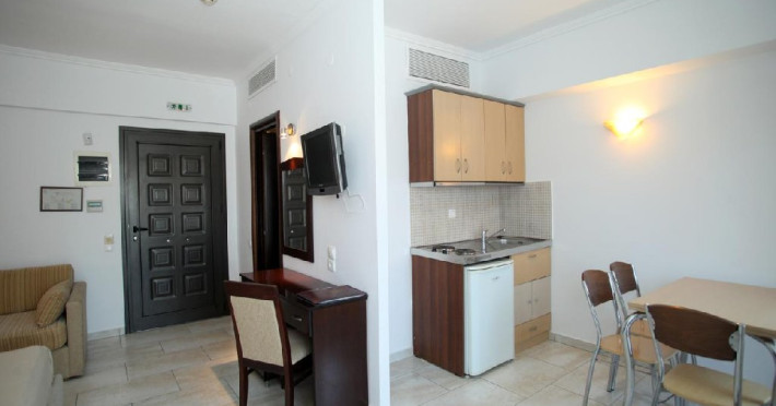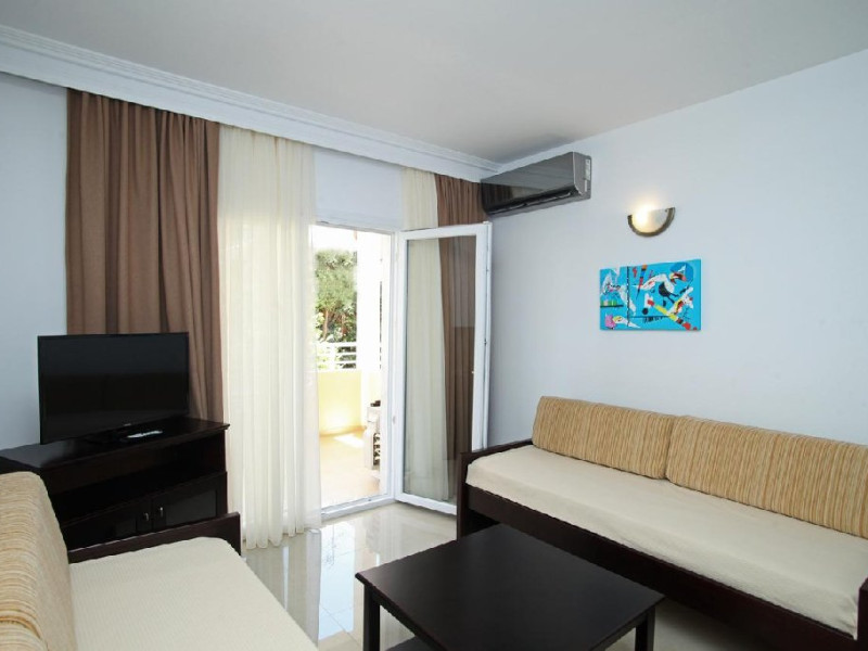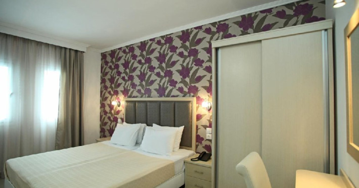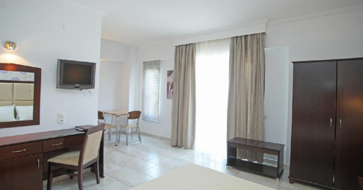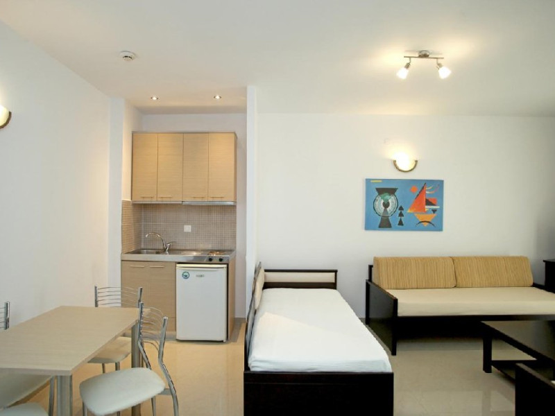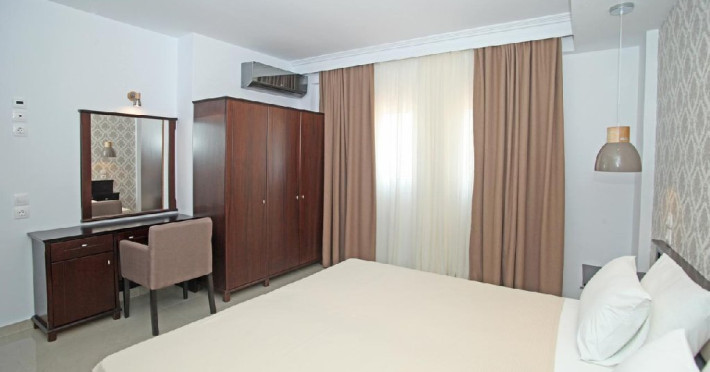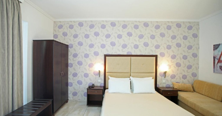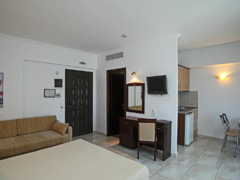 Facilitati camere: Hotelul dispune de 65 de camere dotate cu aer conditionat, internet Wi-Fi, TV prin satelit, frigider, chicineta, uscator de par, seif, baie cu dus si balcon. Studio: pat matrimonial sau 2 paturi twin si canapea extensibila. Apartament: dormitor cu pat matrimonial sau 2 paturi twin si living cu canapea extensibila.