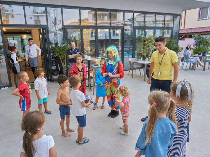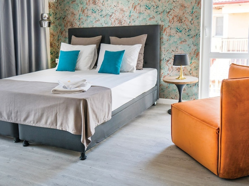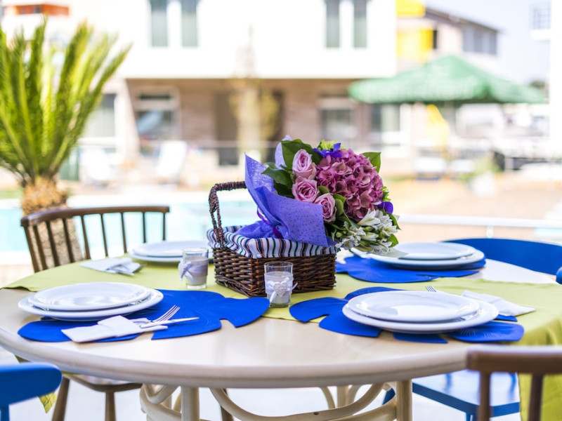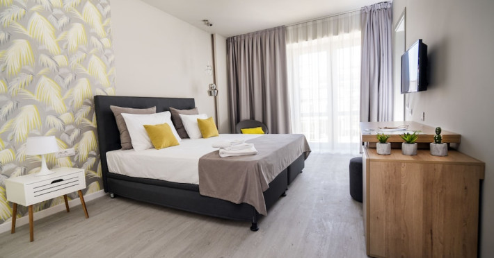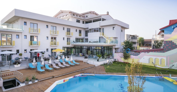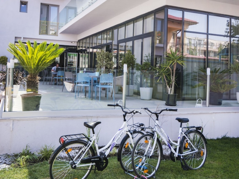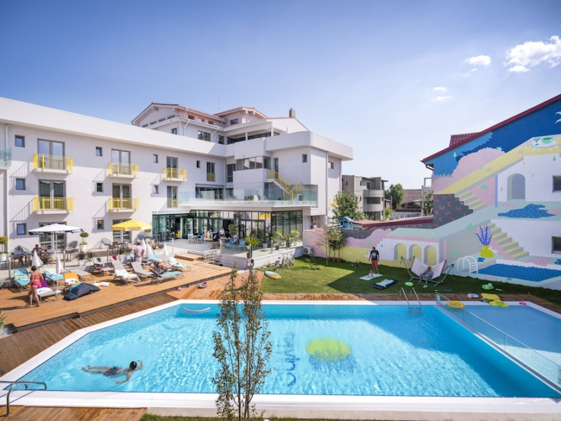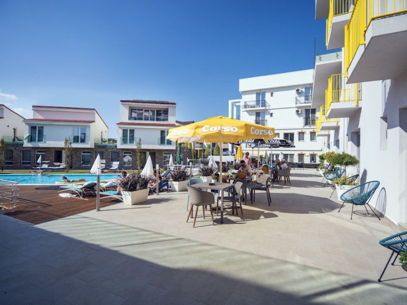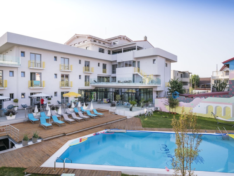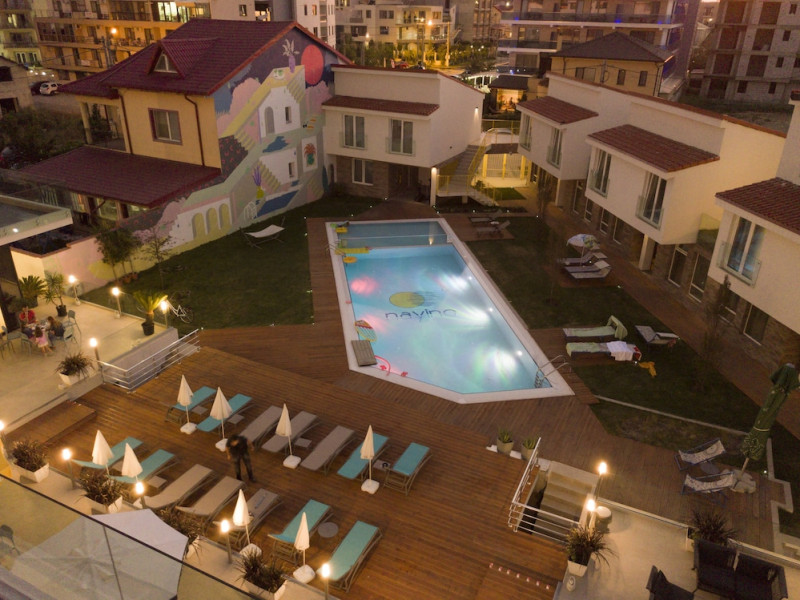 Nayino Resort Hotel is located in Mamaia Nord resort, 328 feet from NÄvodari beach, one of the top-rated beaches in Romania. The property offers an outdoor pool, a rooftop lounge, bike rental and free WiFi. The rooms and suites offer views of the Black Sea, or of the colorful garden by the pool. All the units are furnished in light and natural colors that reflect the sea and the tropical forest, and come with a flat-screen TV with cable channels. The rooms in the lodges by the pool have access to a private grass terrace. Guests can rent bikes on site and begin exploring the surroundings. The outdoor pool includes a separate pool area for children. You can savor Mediterranean-inspired cuisine at Nayino Restaurant. Drinks and appetizers can be found at the 2 on-site bars, one of which is a rooftop bar. Free private parking is available on site. At Nayino Resort Hotel you will be close to windsurfing, kite surfing and other water sports facilities. Mihail KogÄlniceanu International Airport is a 15-minute drive away.WiFi is available in all areas and is free of charge. Free private parking is available on site (reservation is not needed). Pets are not allowed. Children of all ages are allowed. Children 2 and under stay for free when using an available crib. Children 5 and under stay for free when using an existing bed. Children 12 and under stay for 110Â lei per person, per night when using an available extra bed. People 13 and up stay for 155Â lei per person, per night when using an available extra bed. Any type of extra bed or crib is upon request and needs to be confirmed by management. Additional fees are not calculated automatically in the total cost and will have to be paid for separately during your stay.Checkin Time: 16:00Checkin End Time: 00:00Checkout From: 07:00Checkout End Time: 12:00Hotel important information: Please note that the rooftop bar/lounge opens starting with 15 August 2017.