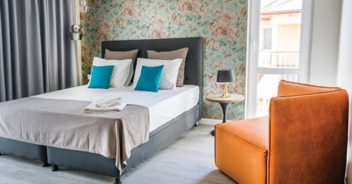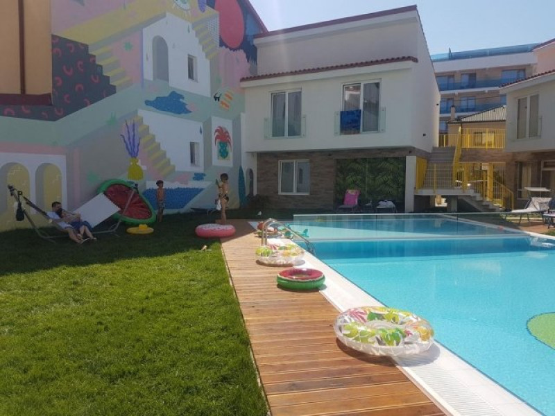 NAYINO RESORT HOTEL este situat in Mamaia Nord, la 2 minute pe jos fata de plaja si reprezinta un concept nou de vacanta la malul Marii Negre. Acesta are 44 unitati de cazare spatioase si luminoase. Dotari si servicii Nayino Resort Hotel este un concept nou de vacanta la malul Marii Negre care aduce un suflu proaspat in peisajul hotelier actual prin liniile arhitecturale simple si rafinate, captivarea simturilor de la rasfatul gastronomic a la carte la prospetimea gradinii si a teraselor inierbate din curtea interioara cu piscina. Restaurantul a la carte al hotelului nostru are o capacitate de 140 de locuri, imbinand armonios liniile arhitecturale clare cu design-ul modern si elementele naturale, mizand pe simplitatea si functionalitatea formelor. Calatoria gastronomica incepe in acest cadru generos si te poarta indraznet si jucaus in spatiul mediteranean tot timpul anului, iar vara, pe cele doua terase in aer liber, ce insumeaza 120 de locuri, uiti de orice grija atunci cand te trezesti in fata unei clasice felii crocante de margherita sau a unei focoase furiosa, preparate irezistibile din meniul de pizzerie si braserrie. Camerele si suitele au vedere la Marea Neagra sau la gradina plina de culoare de langa piscina. Oaspetii pot AZnchiria biciclete de la hotel pentru a explora AZmprejurimile. Piscina AZn aer liber are zona separata pentru copii. Este disponibil si un loc de joaca. La proprietate exista parcare privata gratuita. Nayino Resort Hotel se afla AZn apropiere de facilitati de windsurfing, kite surfing si alte sporturi nautice. Servicii masa MASA: restaurantul propriu Nayino serveste preparate din bucataria mediteraneana. Cele 2 baruri ale hotelului, dintre care unul este pe acoperis, servesc bauturi si aperitive. Mic dejun - bufet suedez Demipensiune - mic dejun bufet suedez + pranz in sistem fisa cont Dotari camere Toate unitatile de cazare au mobilier AZn culori deschise si naturale, amintind de mare si de padurea tropicala, si sunt dotate cu TV cu ecran plat cu canale prin cablu. Camerele din cabane de lA?nga piscina au acces la o terasa privata, cu iarba. Politica de acomodare: - Camera dubla: 2 adulti + 1 copil 0 - 13.99 ani; - Studio: 2 adulti + 2 copii 0 - 13.99 ani; - Suita: 2 adulti + 2 copii 0 - 13.99 ani/ 3 adulti Facilitati copii In camera cu 2 adulti: - primul si al doilea copil cu varsta intre 0- 5.99 ani au gratuitate la cazare si masa, fara pat suplimentar; - primul si al doilea copil cu varsta intre 6- 11.99 ani au gratuitate la cazare, dar achita 50% din c/val meselor; - copiii cu varsta peste 12 ani sunt considerati adulti si achita c/val meselor si patulului suplimentar; Cost pat suplimentar: 30 euro/ zi (fara mese incluse).